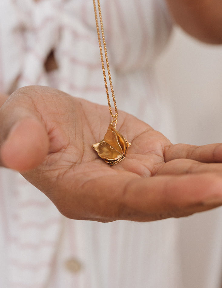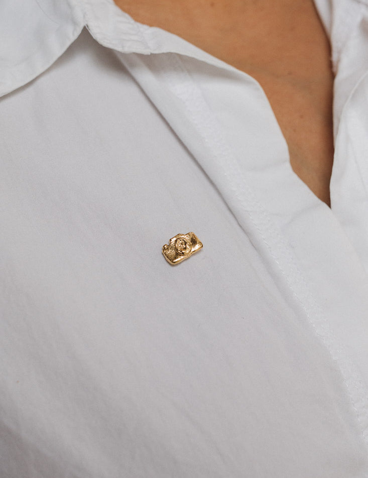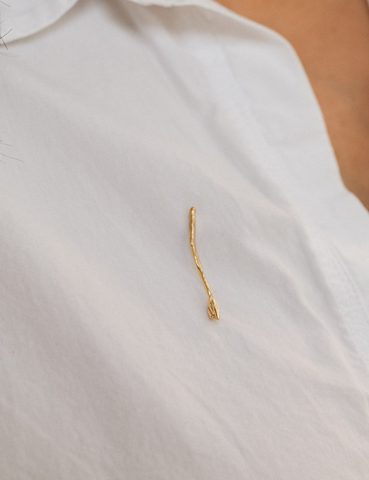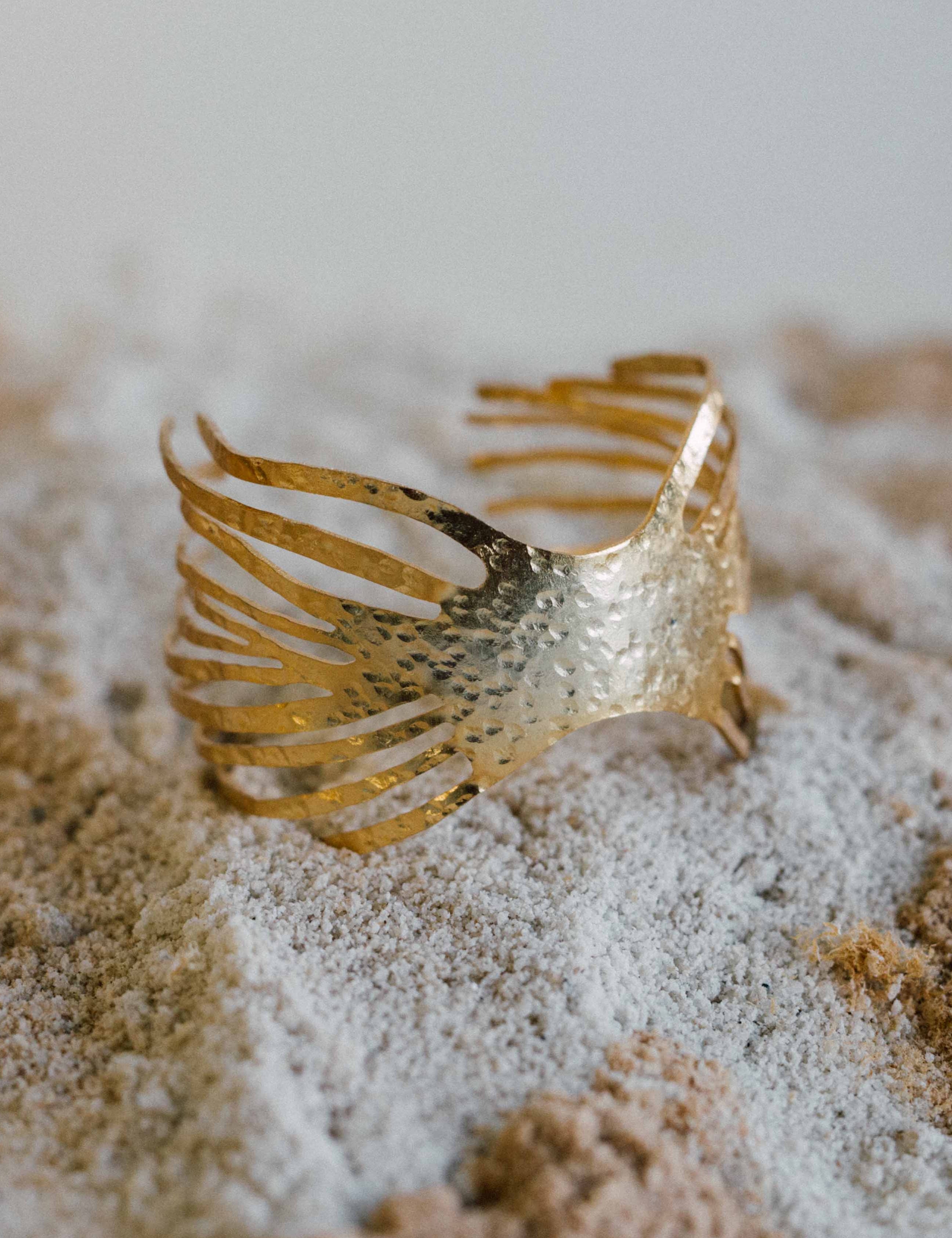 RIZO explores the beauty of movement in undulating shapes and subtle textures. Each piece, hand hammered and gold plated, reflects the essence of the simple and the imperfect.