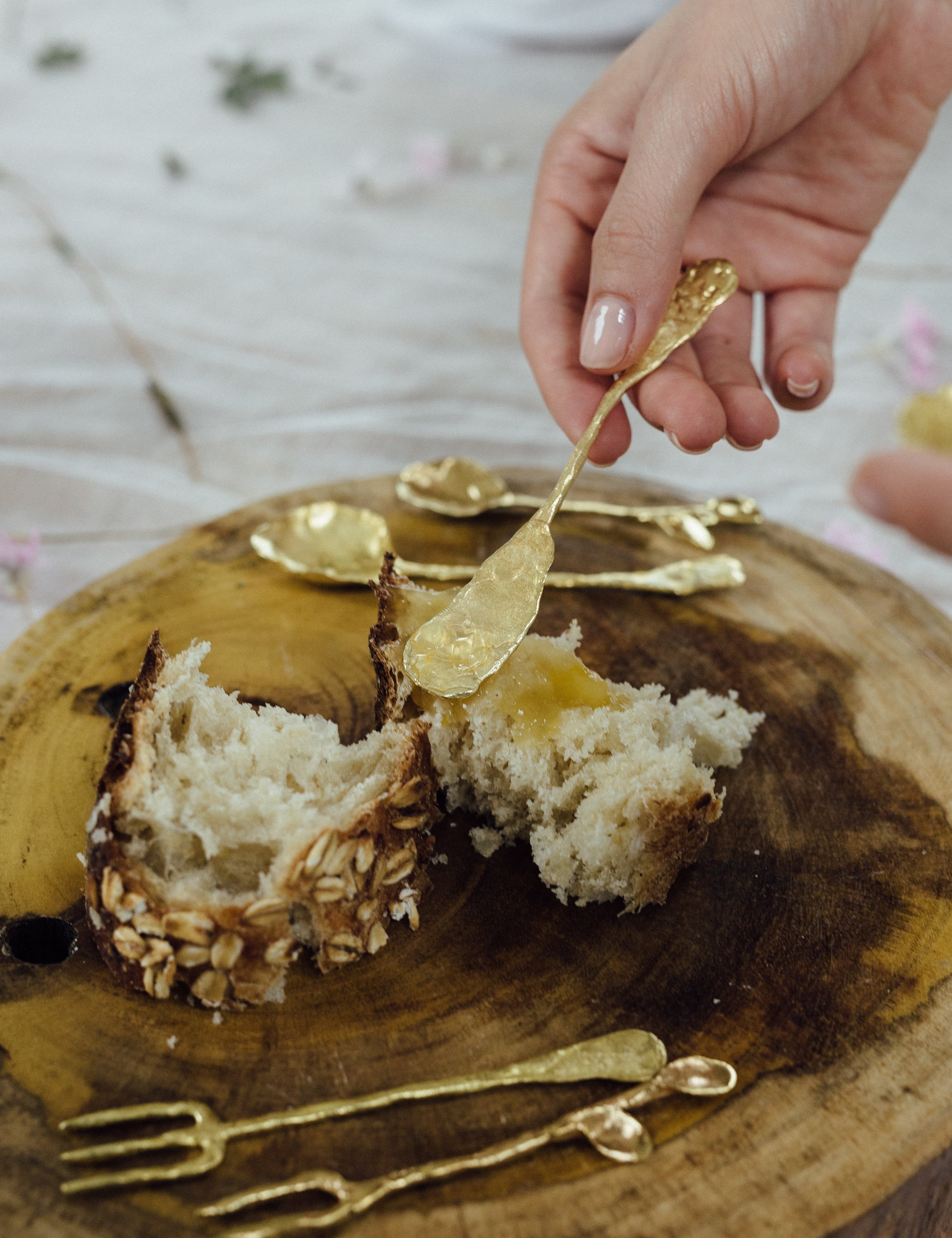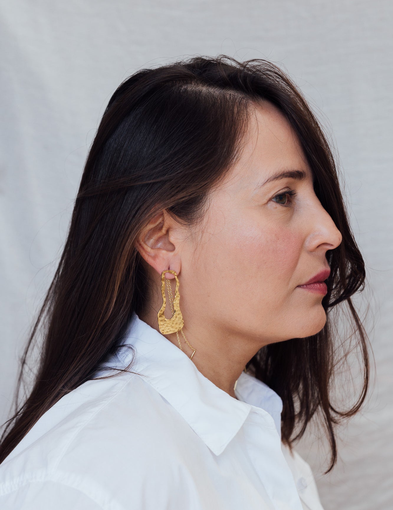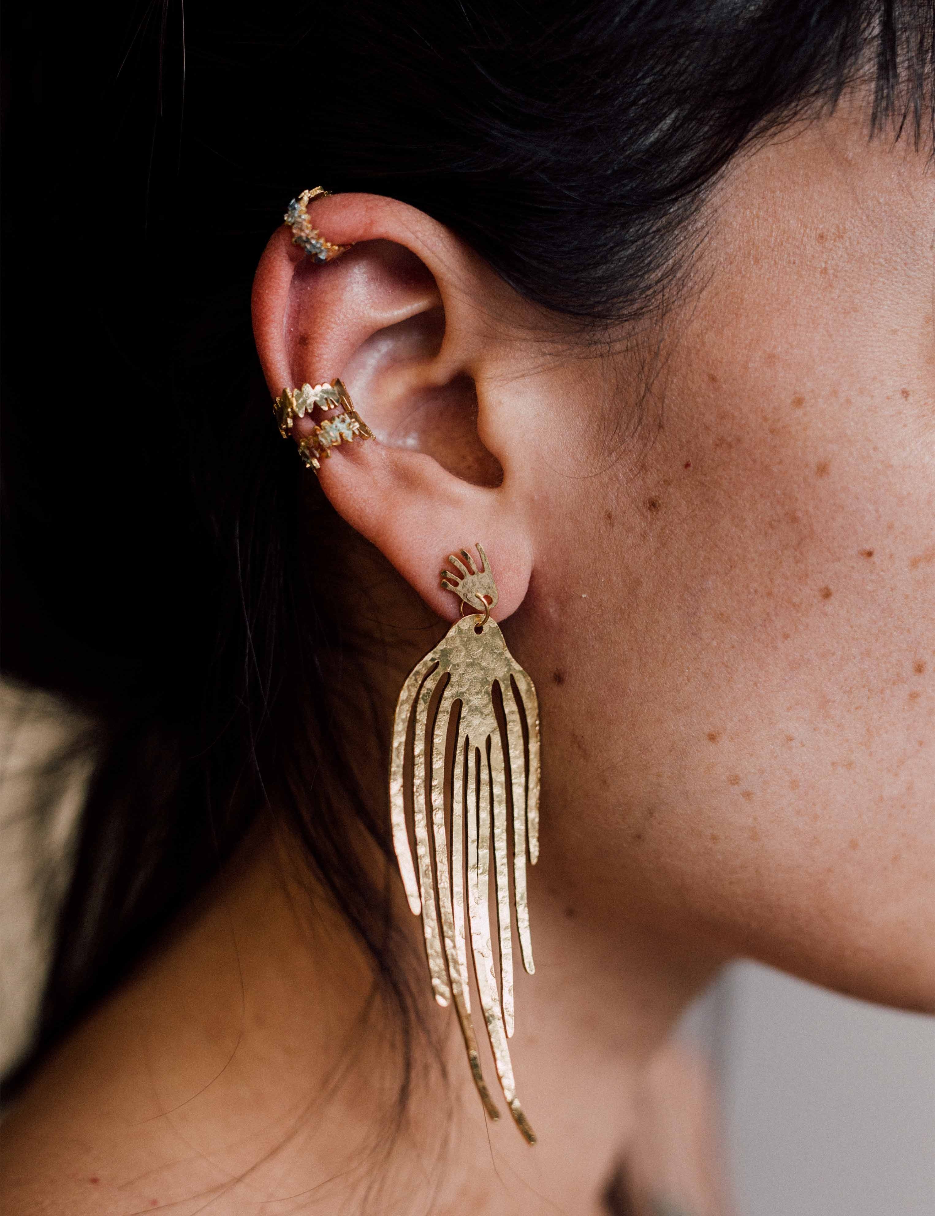 RIZO explores the beauty of movement in undulating shapes and subtle textures. Each piece, hand hammered and gold plated, reflects the essence of the simple and the imperfect.