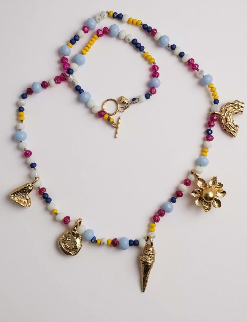That is why, together with our children, we created a capsule of necklaces that true to CÂPÂ’s aesthetic: imperfect, natural, and spontaneous came to life as a rainbow, a happy face, an ice cream, a heart, and a daisy.