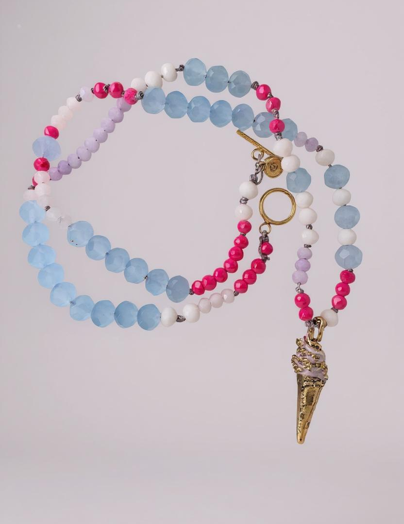 Juicy and fresh: this is the summer capsule. Fruits that evoke the sweetness of the sun are transformed into pieces made of blown glass, assembled with stones and colors that celebrate tropical joy.