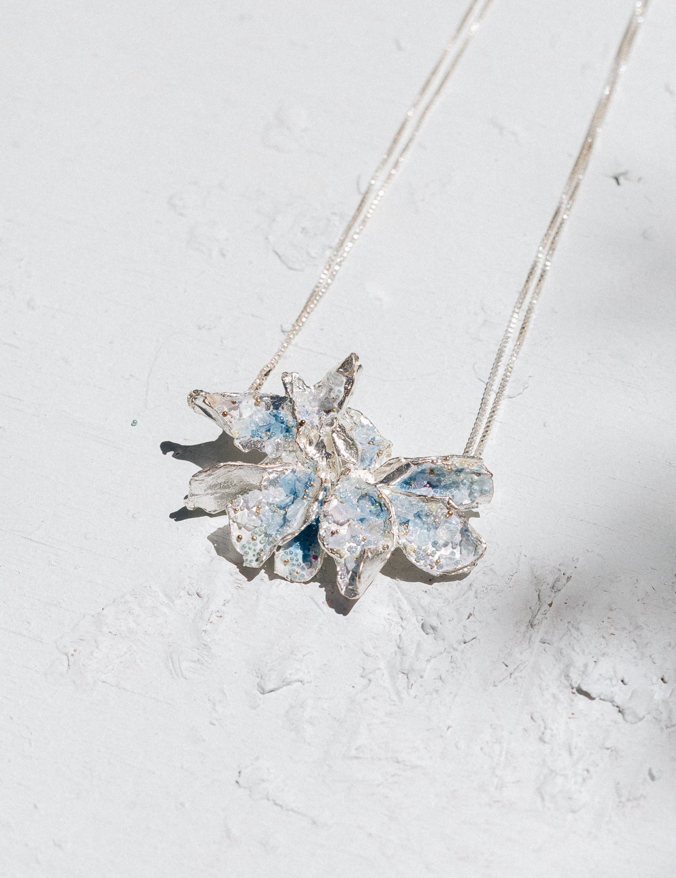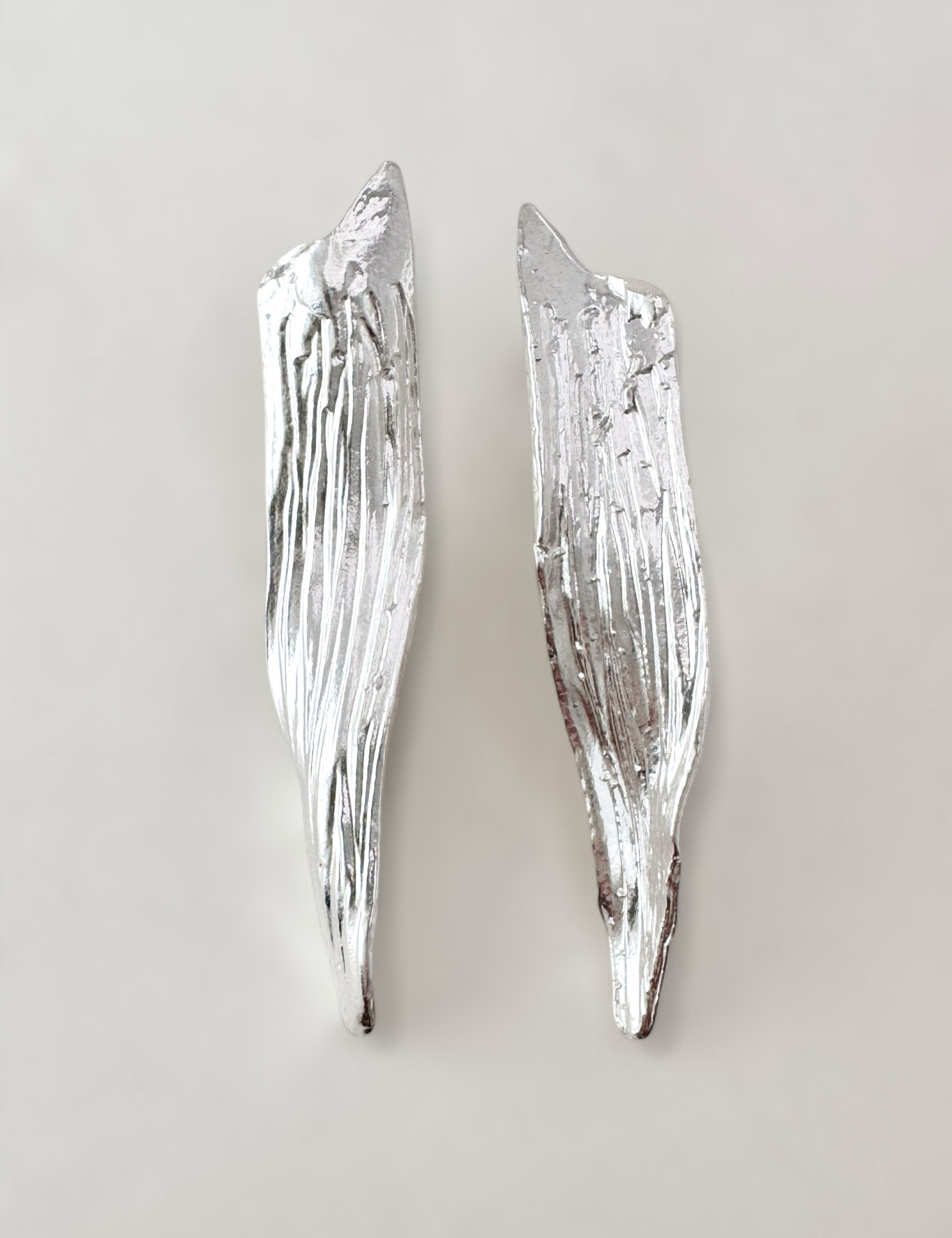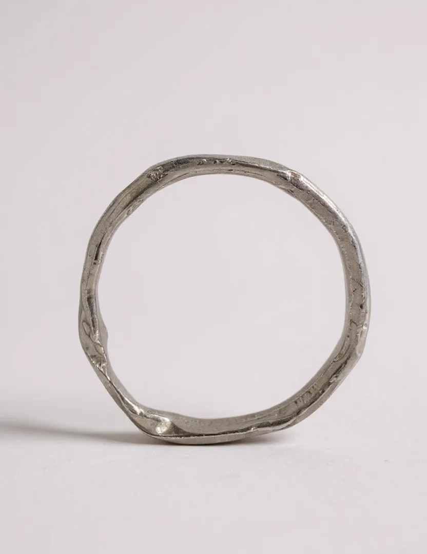The silver, worked by hand, allows these gestures to be recorded: small undulations, twists and lines that recall geological processes.