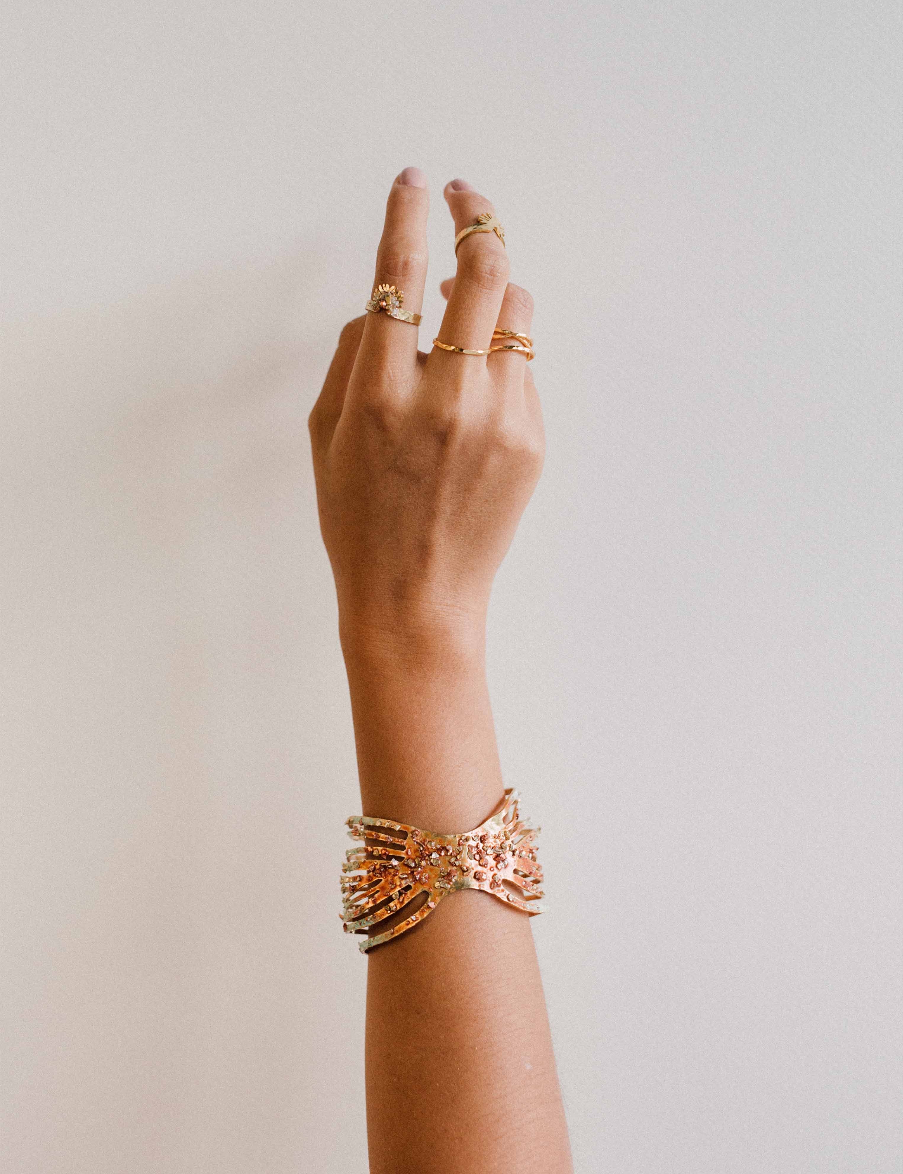 These are not symmetrical or contained jewels. They are pieces that, like the terrain, expand, adapt and transform. Each carries with it a story of folds and layers that speak of time, origin and change.