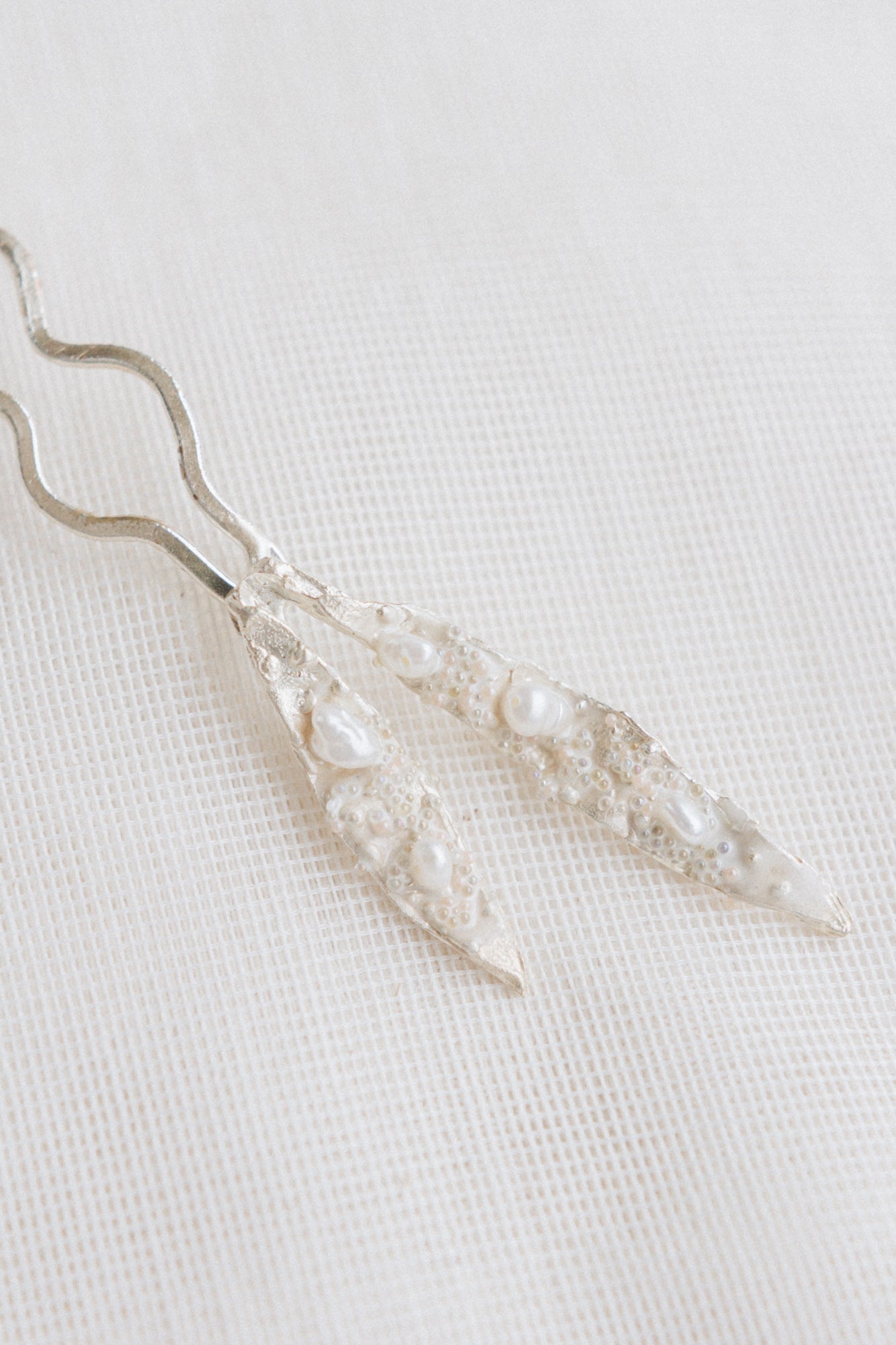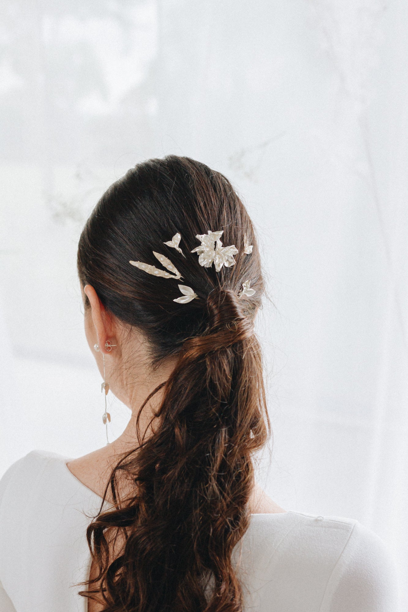 Silvestre is a bridal collection of headpieces and earrings inspired by a special selection of native Colombian orchids, chosen for their shape, texture, and natural movement. Each piece highlights the unique beauty of this emblematic flower, in harmony with the subtle femininity of the bride who wears it.
