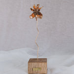 - Bronze on wood base, hand painted with glass granulation.