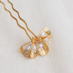 “Pair of Lettuce Leaf Earrings in gold-plated brass hand-painted  rust—with glass granulation detail, displayed on a white background.