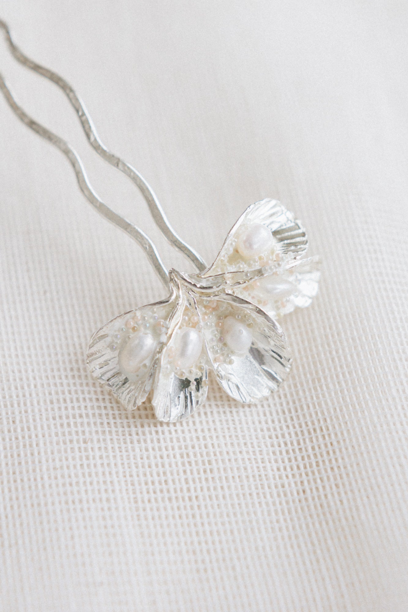 B. Bronze plated with 925 Sterling Silver, hand painted with glass granulation and pearls.