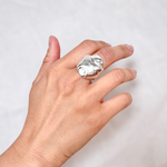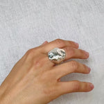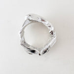 Plegados is a series of sculptural rings made in silver, inspired by the natural processes that shape the landscape: layers that fold, materials that give way, grooves that appear with the passage of time.