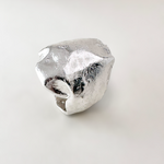 The silver, worked by hand, allows these gestures to be recorded: small undulations, twists and lines that recall geological processes.