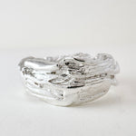 The silver, worked by hand, allows these gestures to be recorded: small undulations, twists and lines that recall geological processes.