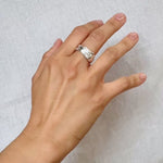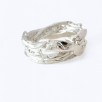 Plegados is a series of sculptural rings made in silver, inspired by the natural processes that shape the landscape: layers that fold, materials that give way, grooves that appear with the passage of time.