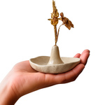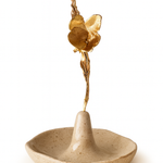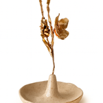 Material: glazed ceramic, hand molded with bronze flower sculpture.