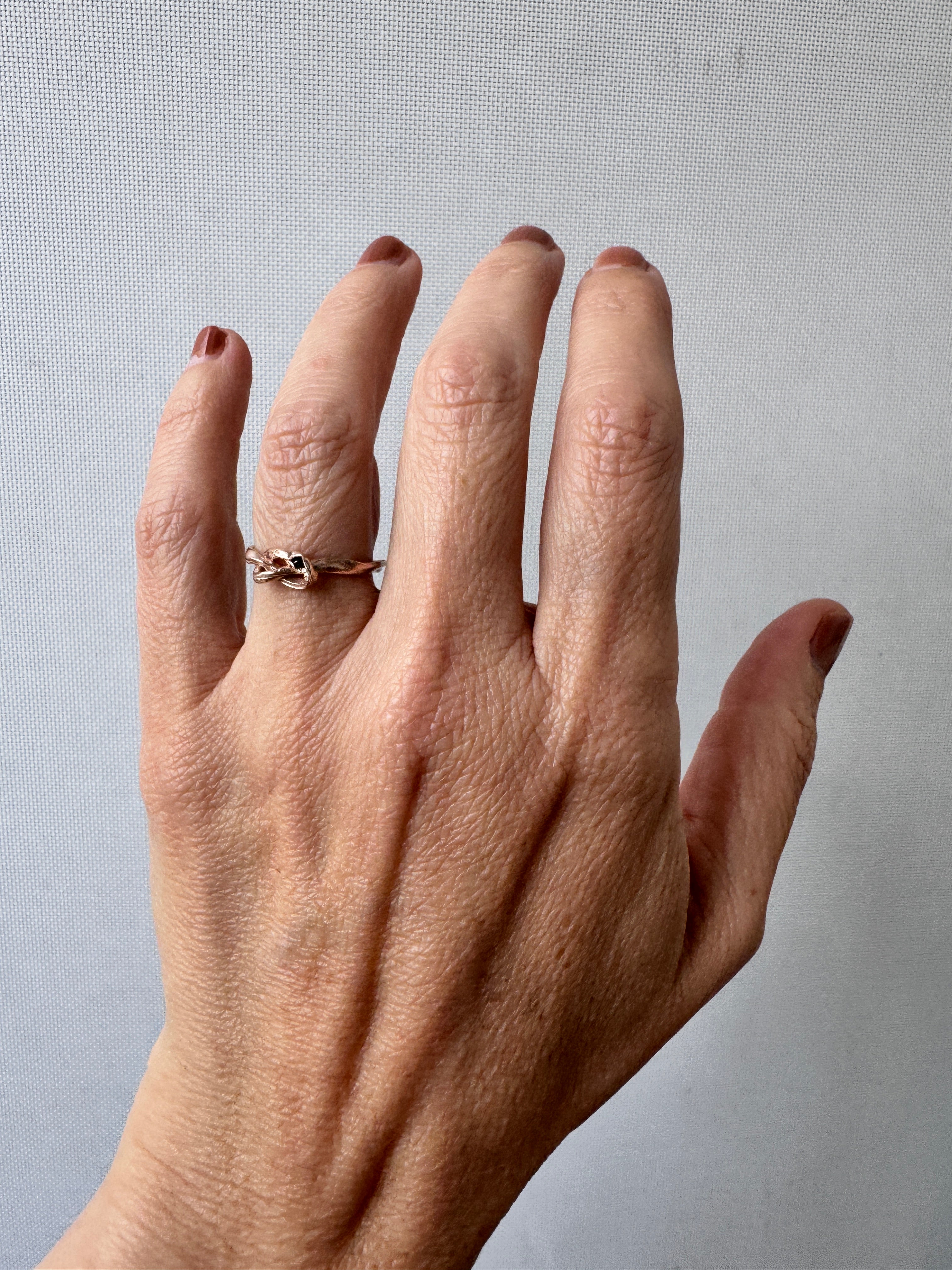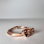 This ring comes packaged in a small cedar, cinnamon, or oak log. These logs contain lavender seeds inside that blend with the scent of the wood. Each box is unique, just like our rings.