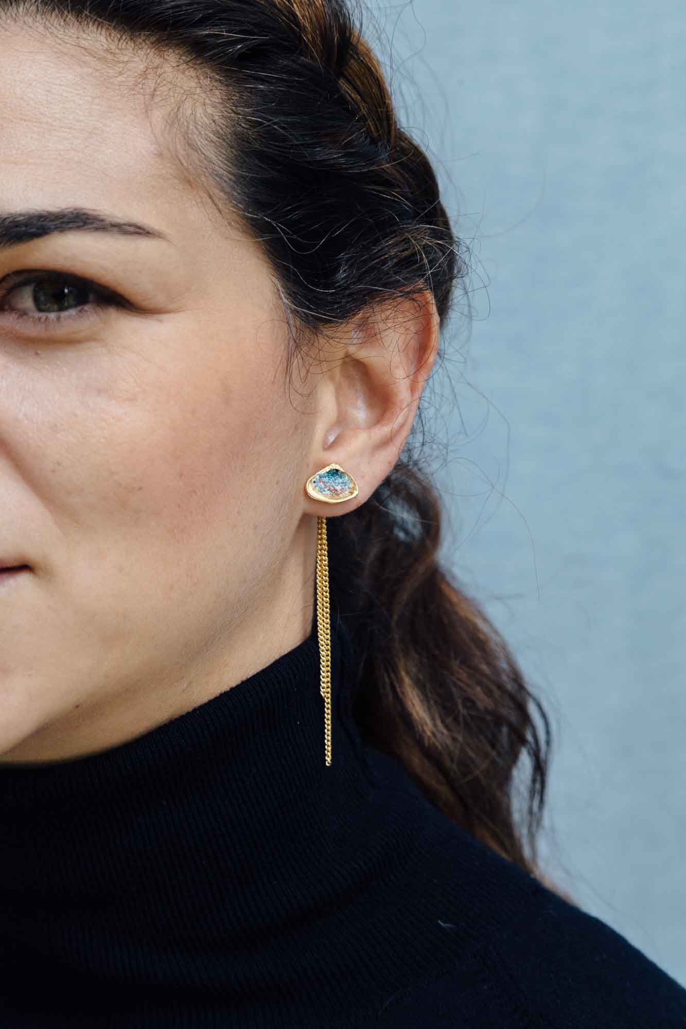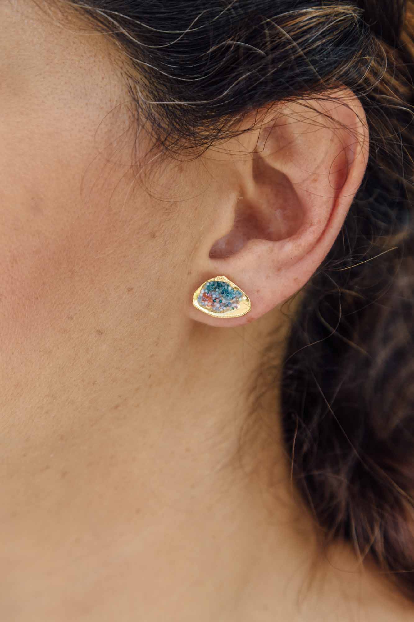 These Sheel earrings are carved and hand painted with granulations. are made from gold plated.