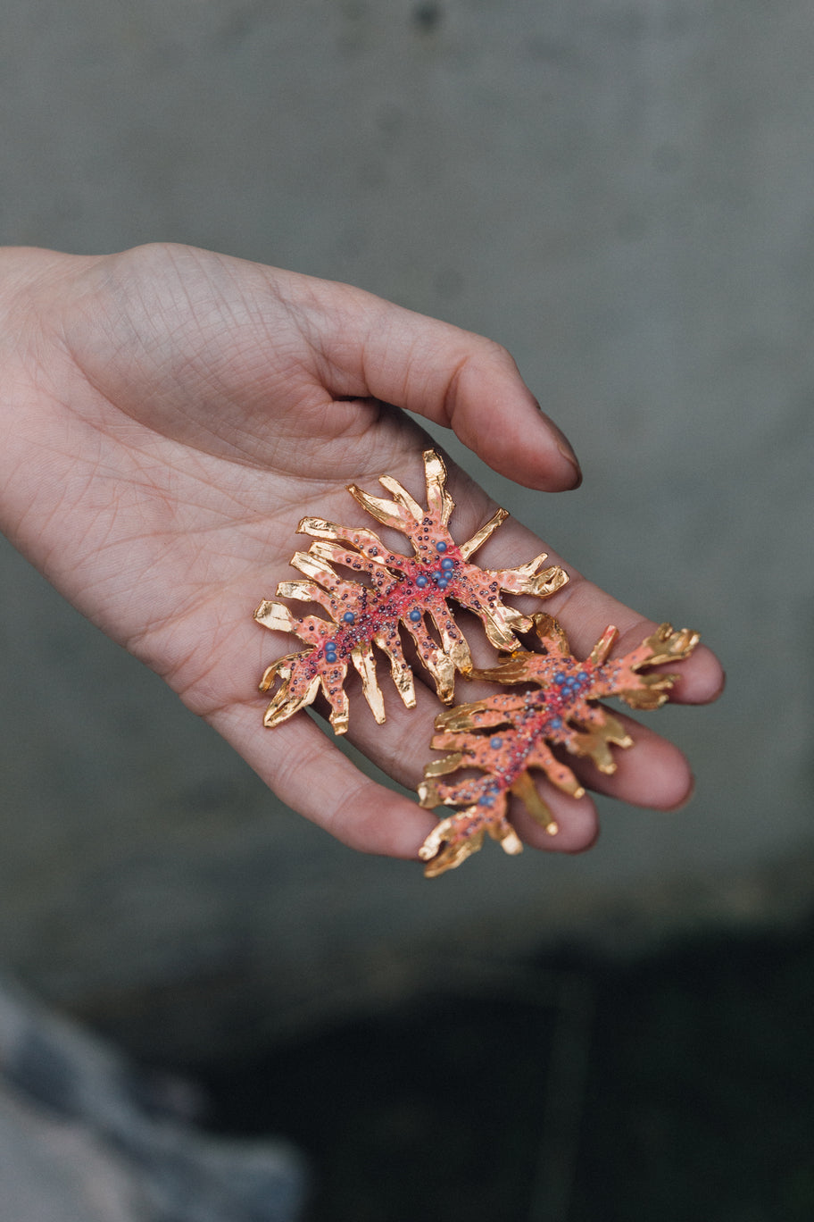 - Gold plated brass, hand-painted with glass granulation.