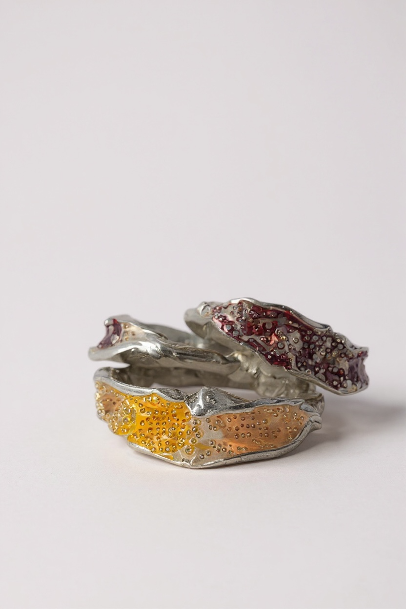 - Sterling Silver, hand-painted with glass granulation.