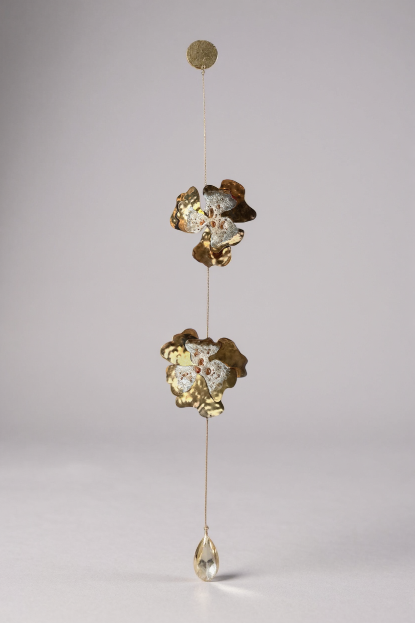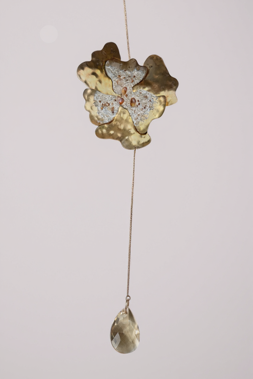 Material: hand-painted bronze with patina, textured with glass granulation and suncatcher crystal.