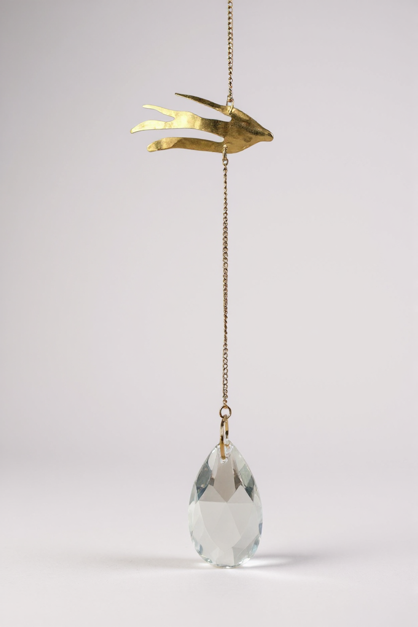 A delicate suncatcher at the end collects and scatters sparkles, while a top plate allows it to be easily attached to different surfaces.