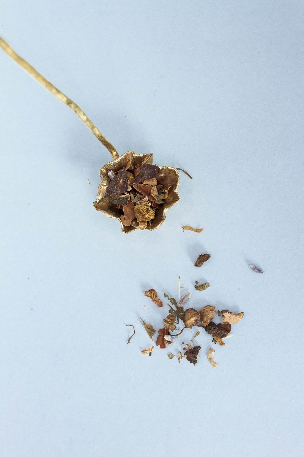 Utilitarian and decorative pieces crafted in brass and ceramic, bringing CÂPÂ’s organic language into everyday spaces. The collection includes utensils, jewelry holders, and flowers inspired by native orchids such as Cattleya and Huanunco, as well as illustrations created in collaboration with artists, based on our jewelry. A collection that transforms the functional into the poetic.