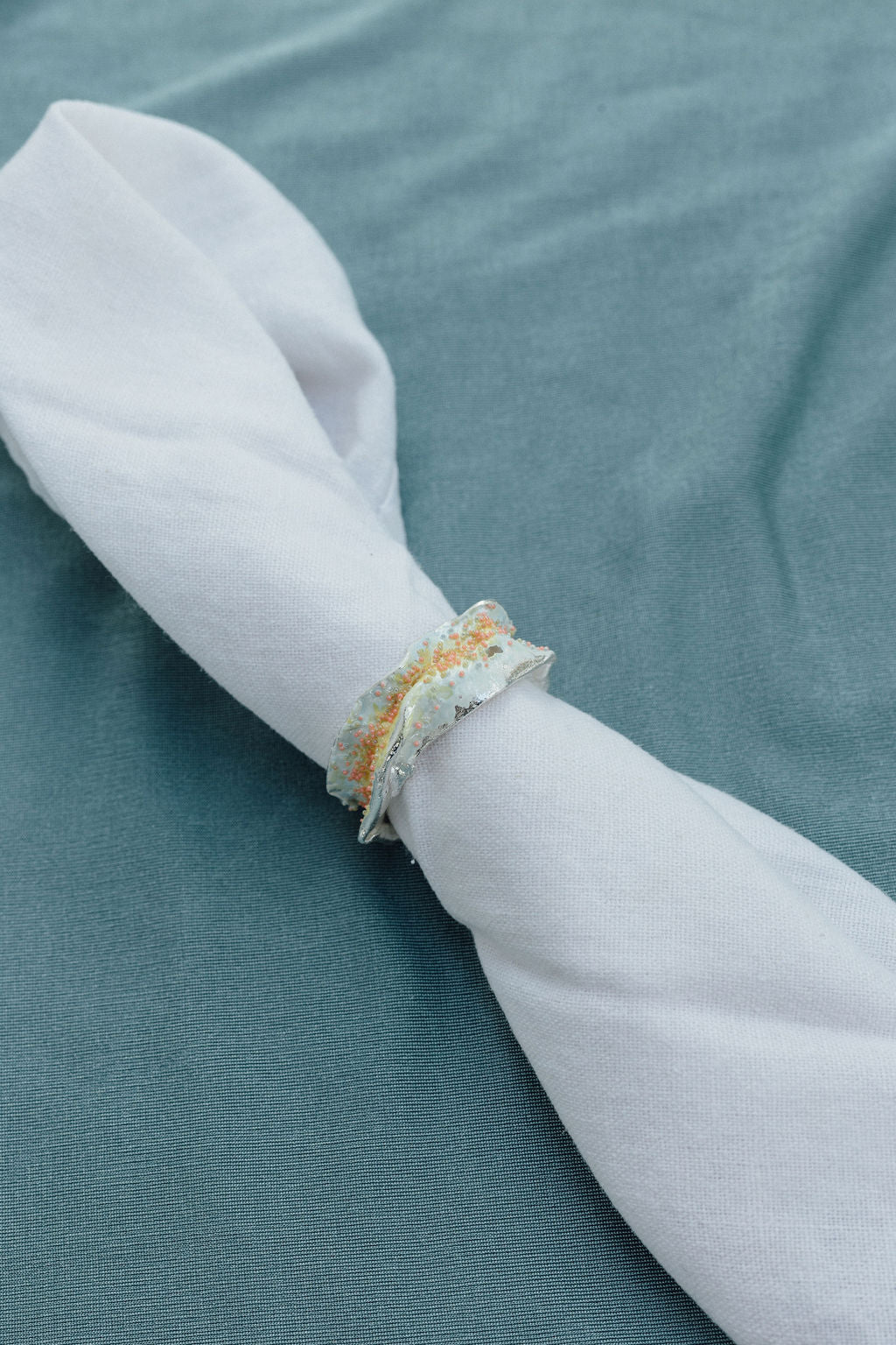 A. Rose gold plated on sterling silver, hand painted and topped with glass beads.
