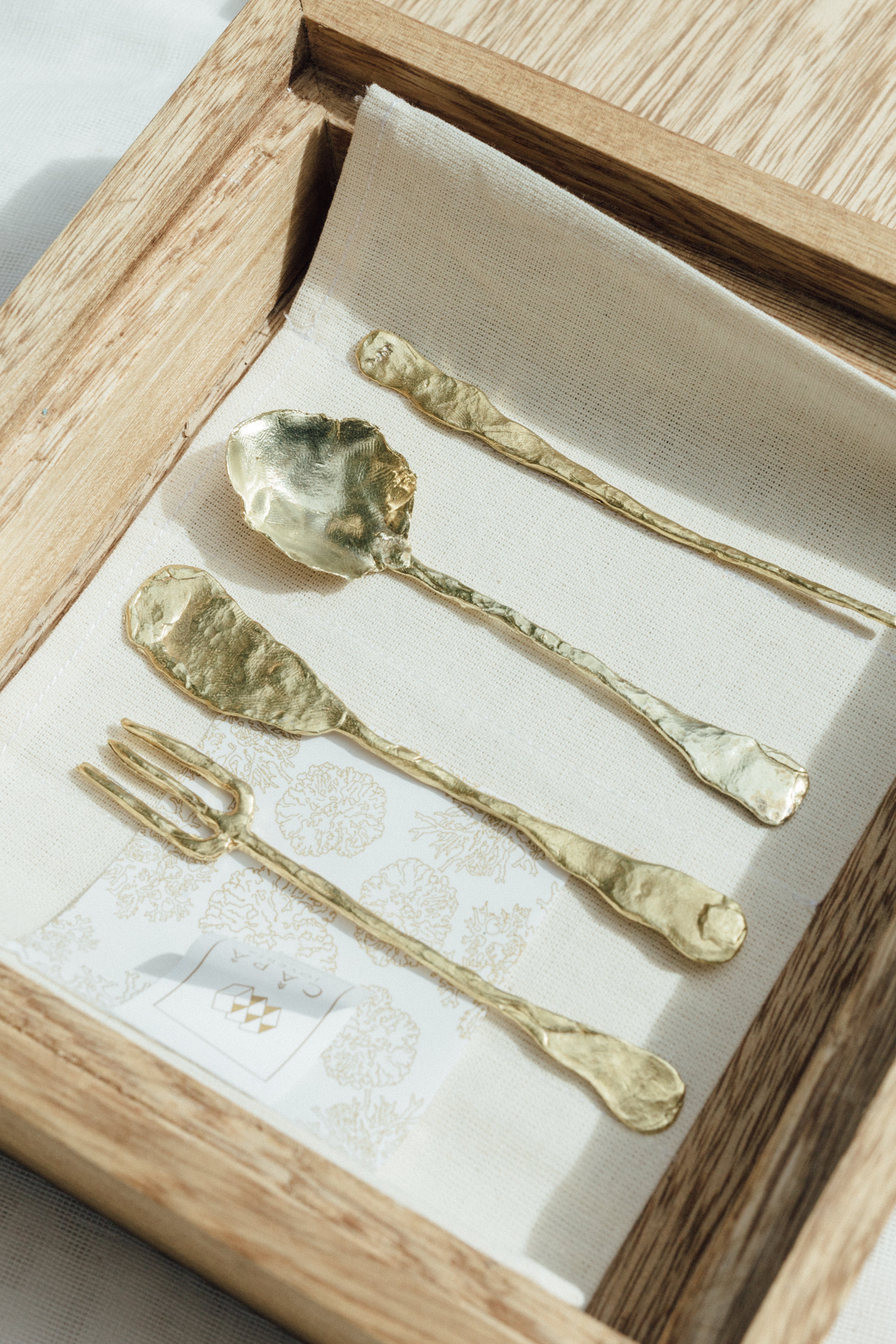 This collection of utilitarian utensils brings together functional pieces for the home, all handcrafted in solid brass with CÂPÂ’s signature aesthetic language. It includes knives, forks, teaspoons and small ladles, each designed to accompany intimate moments—whether it’s tea with friends, a light sauce, or a thoughtfully set table.