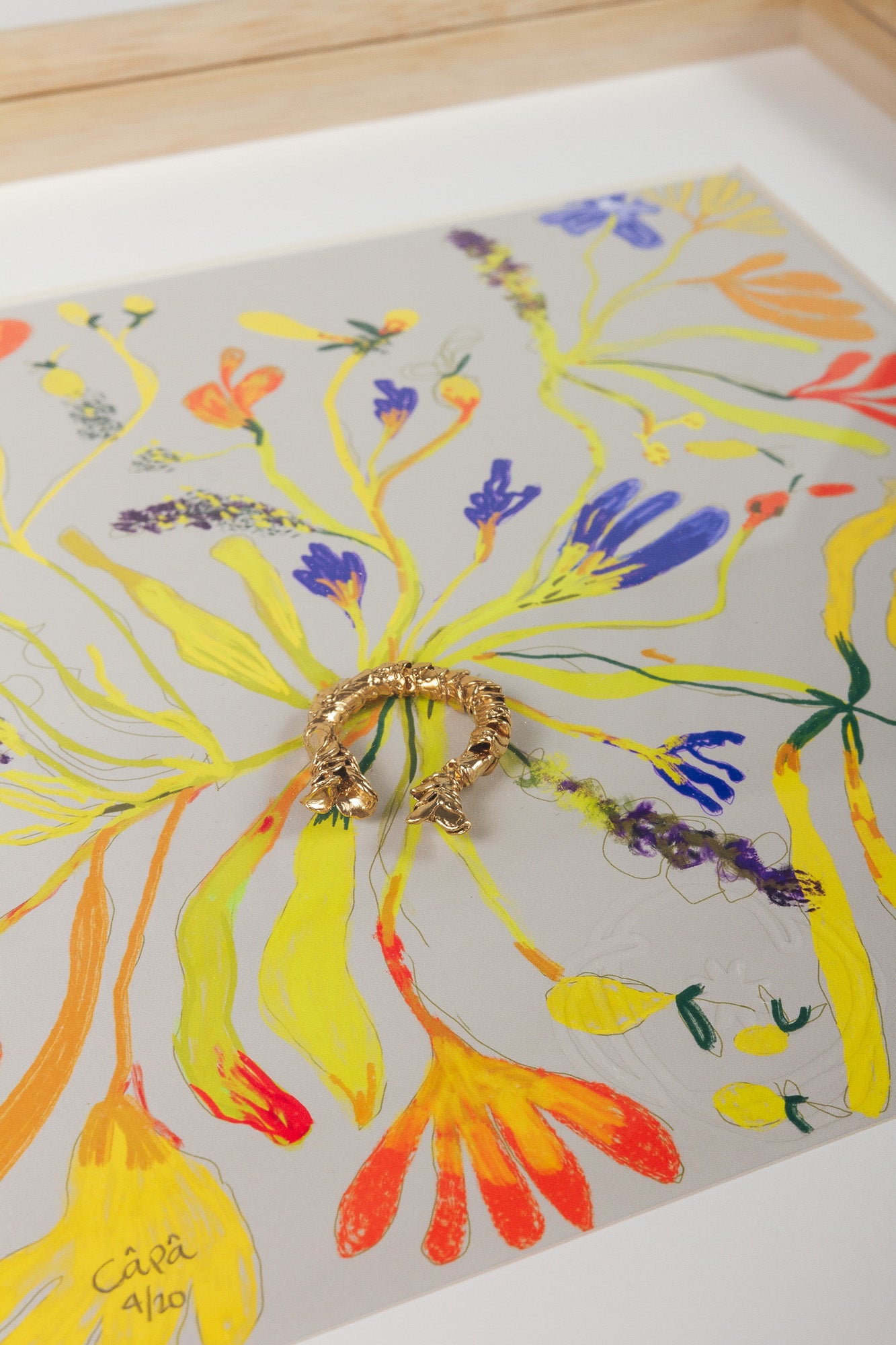 We create our own botany — an imagined natural universe that doesn’t exist, yet feels familiar. Each jewel is crafted one by one: shaped in wax, cast in metal, and painted by hand. Imagined nature, deeply alive.