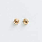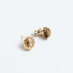 “Pair of Lettuce Leaf Earrings in gold-plated brass hand-painted  rust—with glass granulation detail, displayed on a white background.