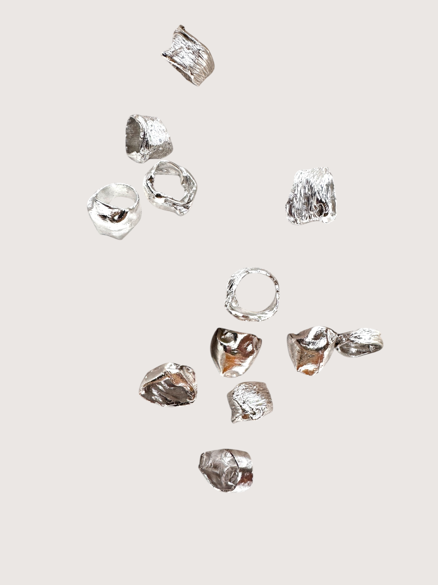 These are not symmetrical or contained jewels. They are pieces that, like the terrain, expand, adapt and transform. Each carries with it a story of folds and layers that speak of time, origin and change.