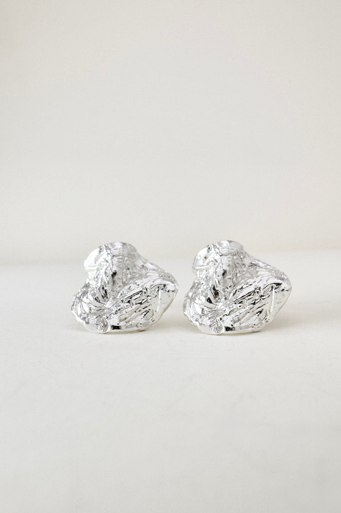 The silver, worked by hand, allows these gestures to be recorded: small undulations, twists and lines that recall geological processes.