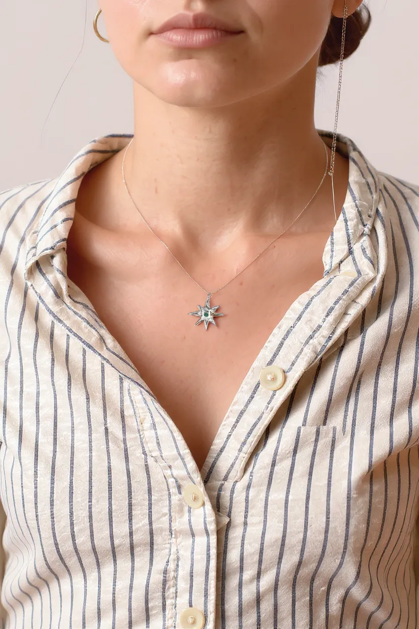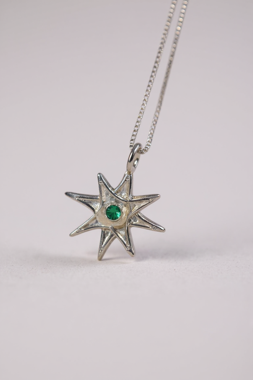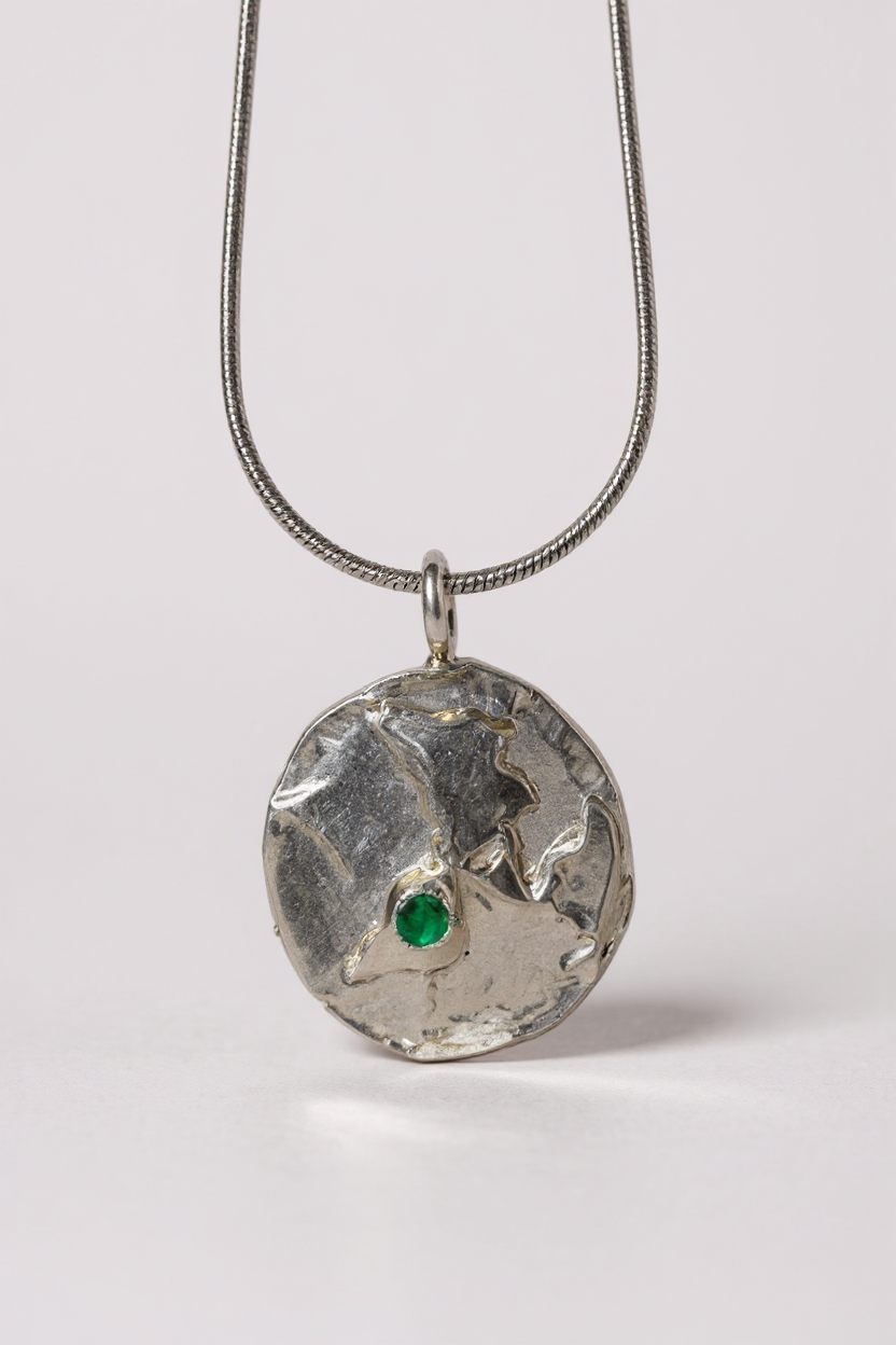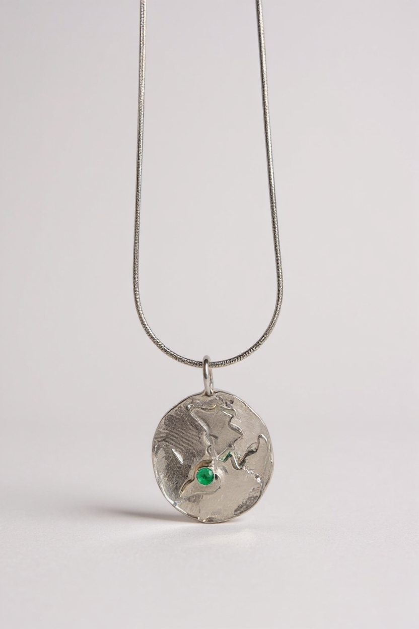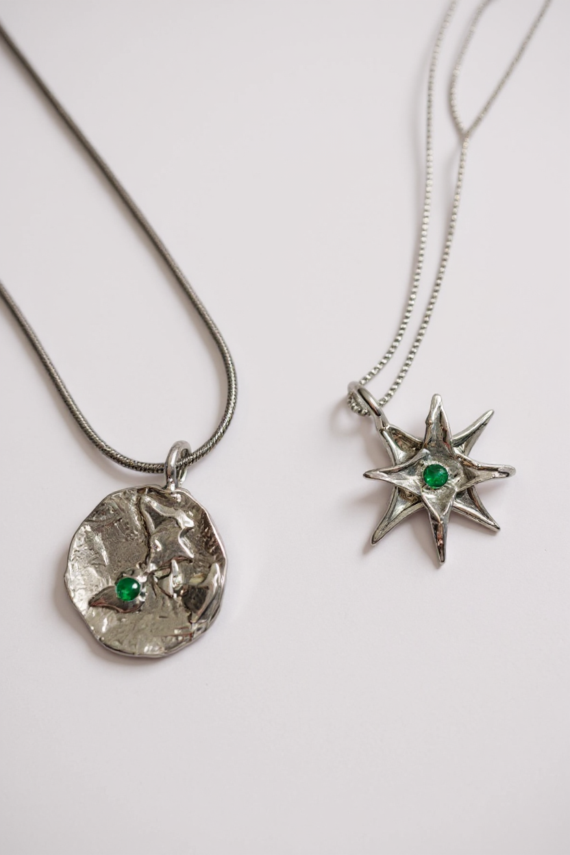 It is a capsule of two silver necklaces that celebrates unions: a world and a star in 925 sterling silver, linked by a green zircon that evokes the exuberance of Colombia.