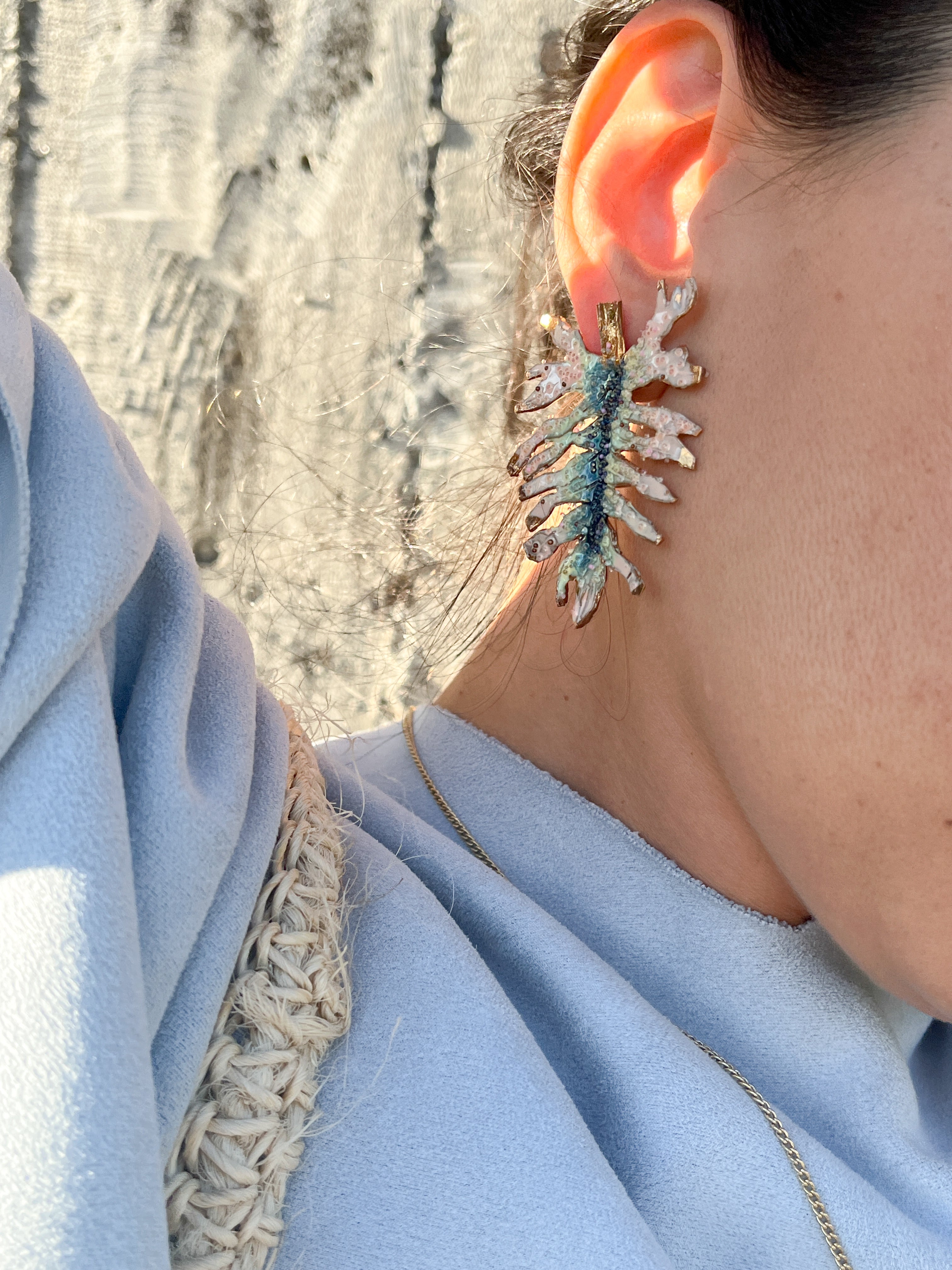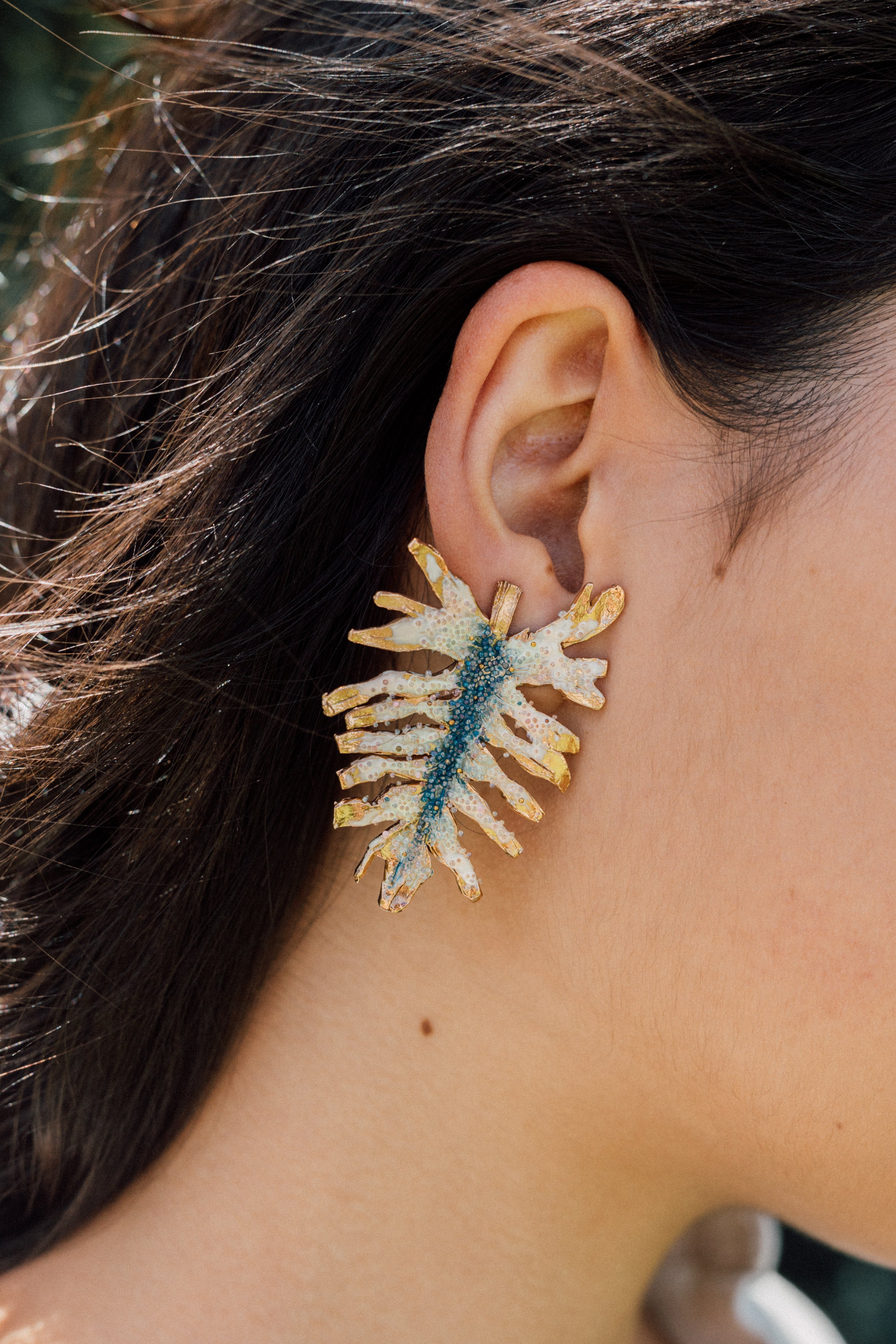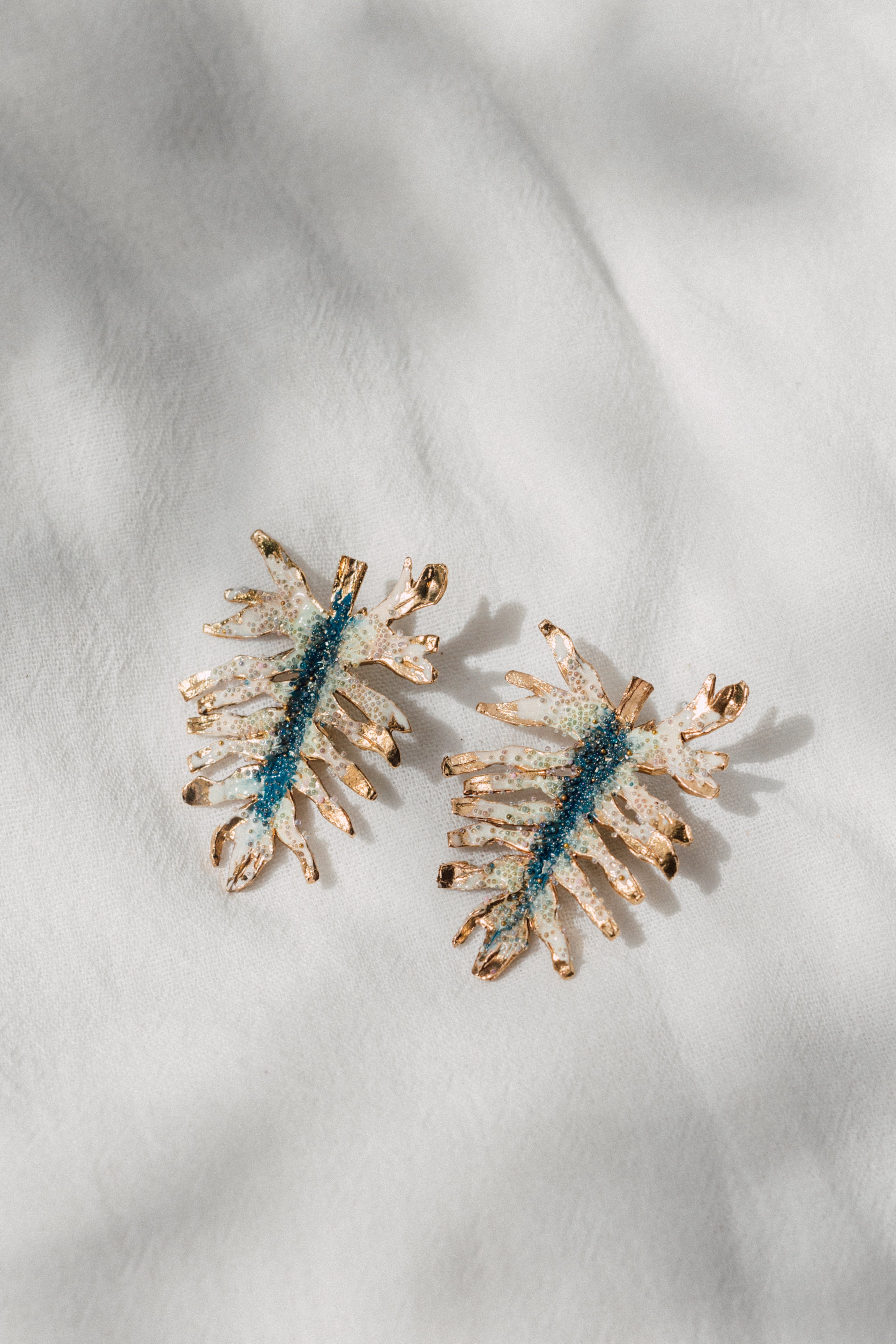 Handmade with 24k gold plated over silver, pigments applied by hand and granulation in glass.
