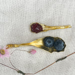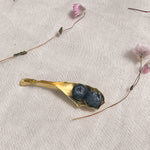 “Pair of Lettuce Leaf Earrings in gold-plated brass hand-painted  rust—with glass granulation detail, displayed on a white background.