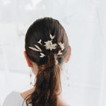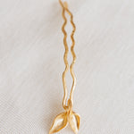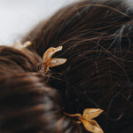 “Pair of Lettuce Leaf Earrings in gold-plated brass hand-painted  rust—with glass granulation detail, displayed on a white background.