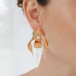 A. Gold plated bronze, hand painted with glass granulation and pearls.