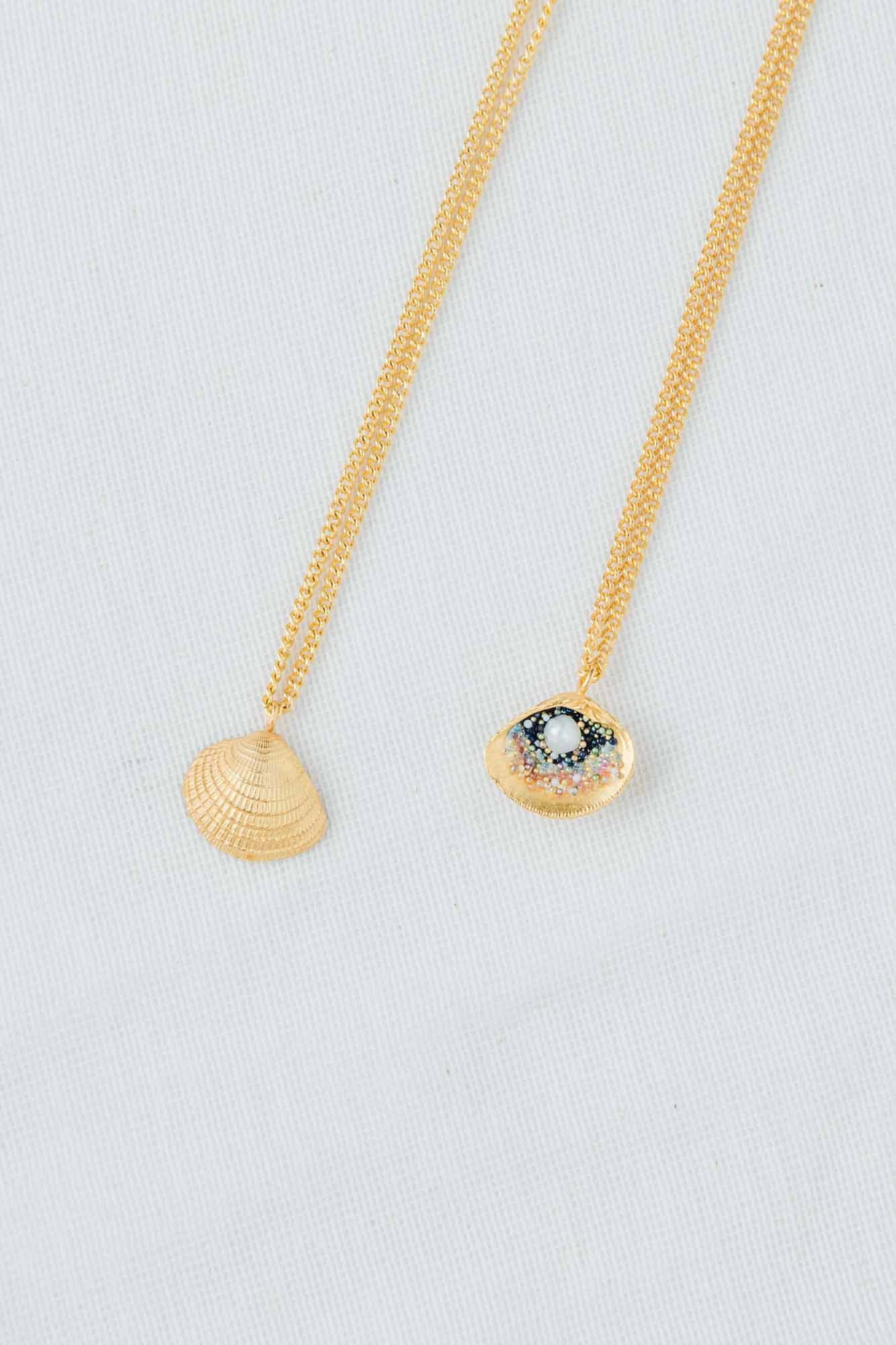 The Shell is carved and hand painted with granulation. it is made from gold plated and supported with a chain.