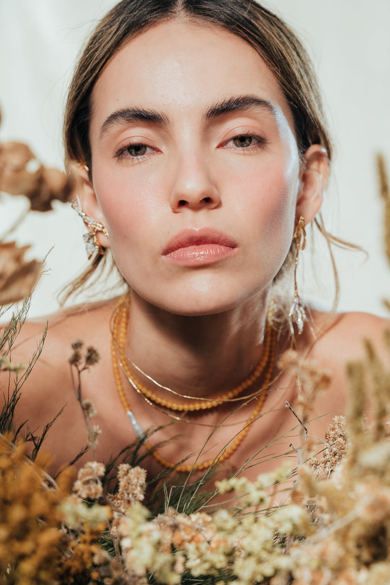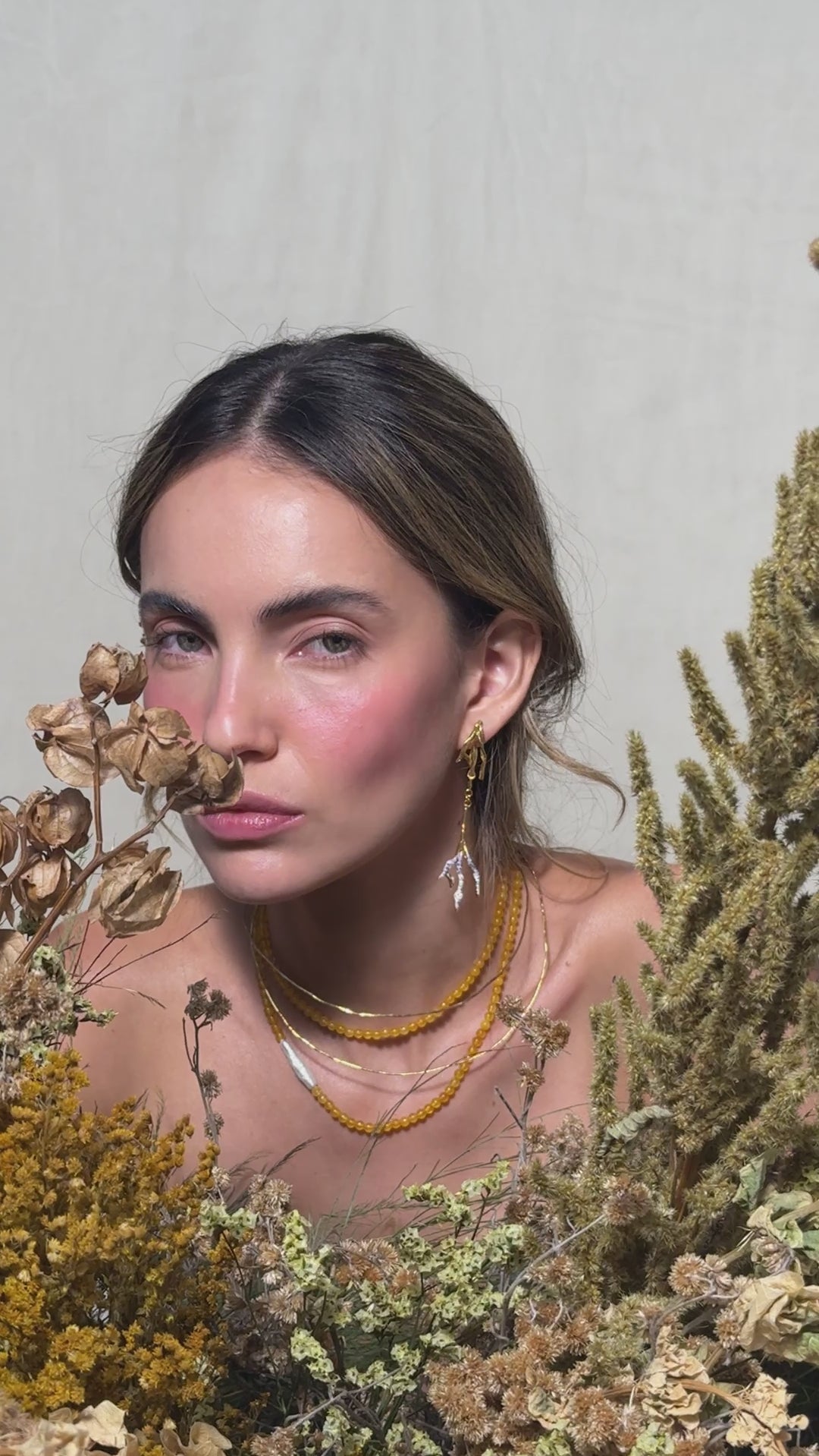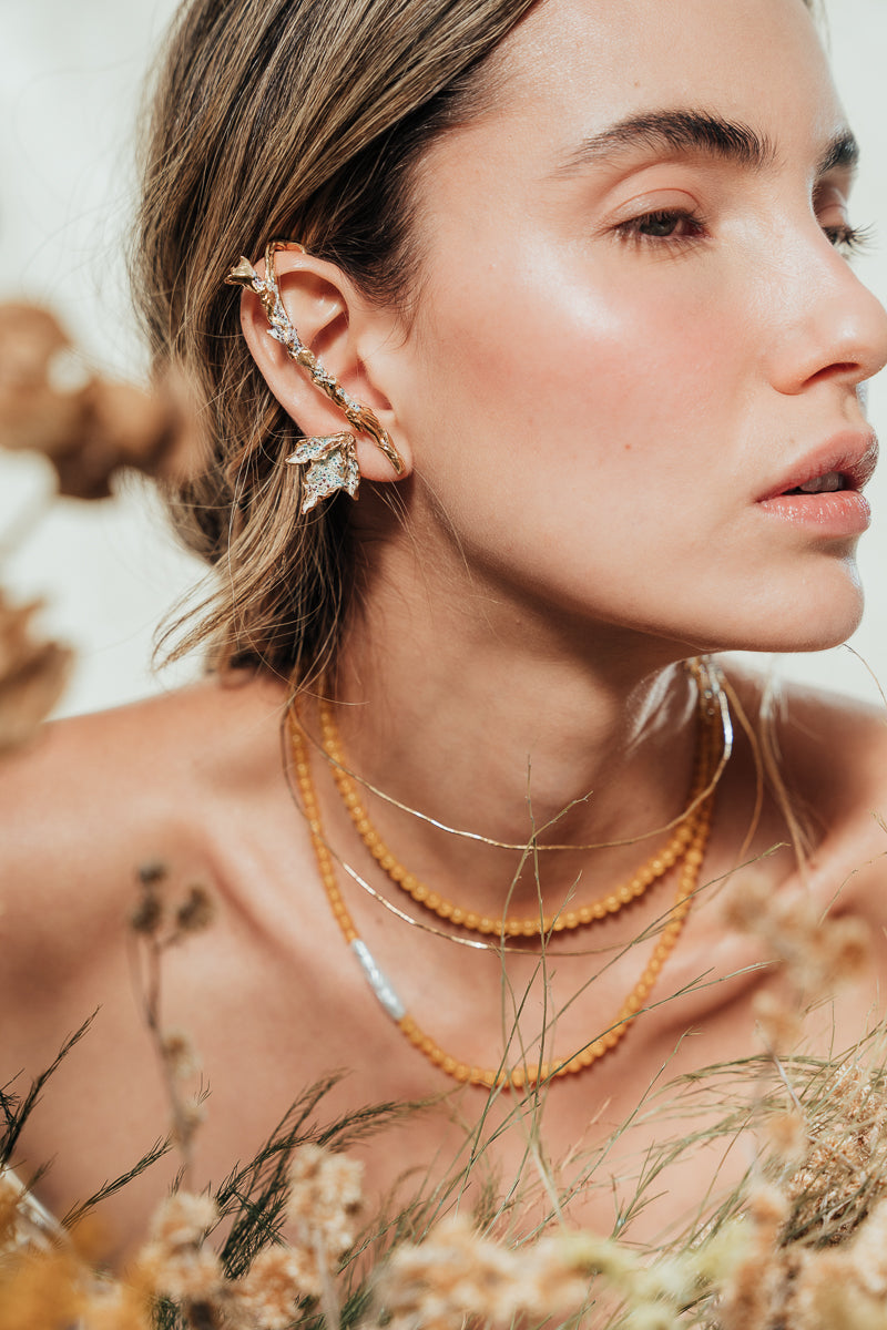 Each piece in this collection is crafted one by one, inspired by the plants and the landscapes around us. First modeled in wax, then cast in metal, and finally plated and hand-painted with care—each one individually.