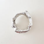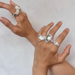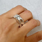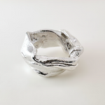 Plegados is a series of sculptural rings made in silver, inspired by the natural processes that shape the landscape: layers that fold, materials that give way, grooves that appear with the passage of time.