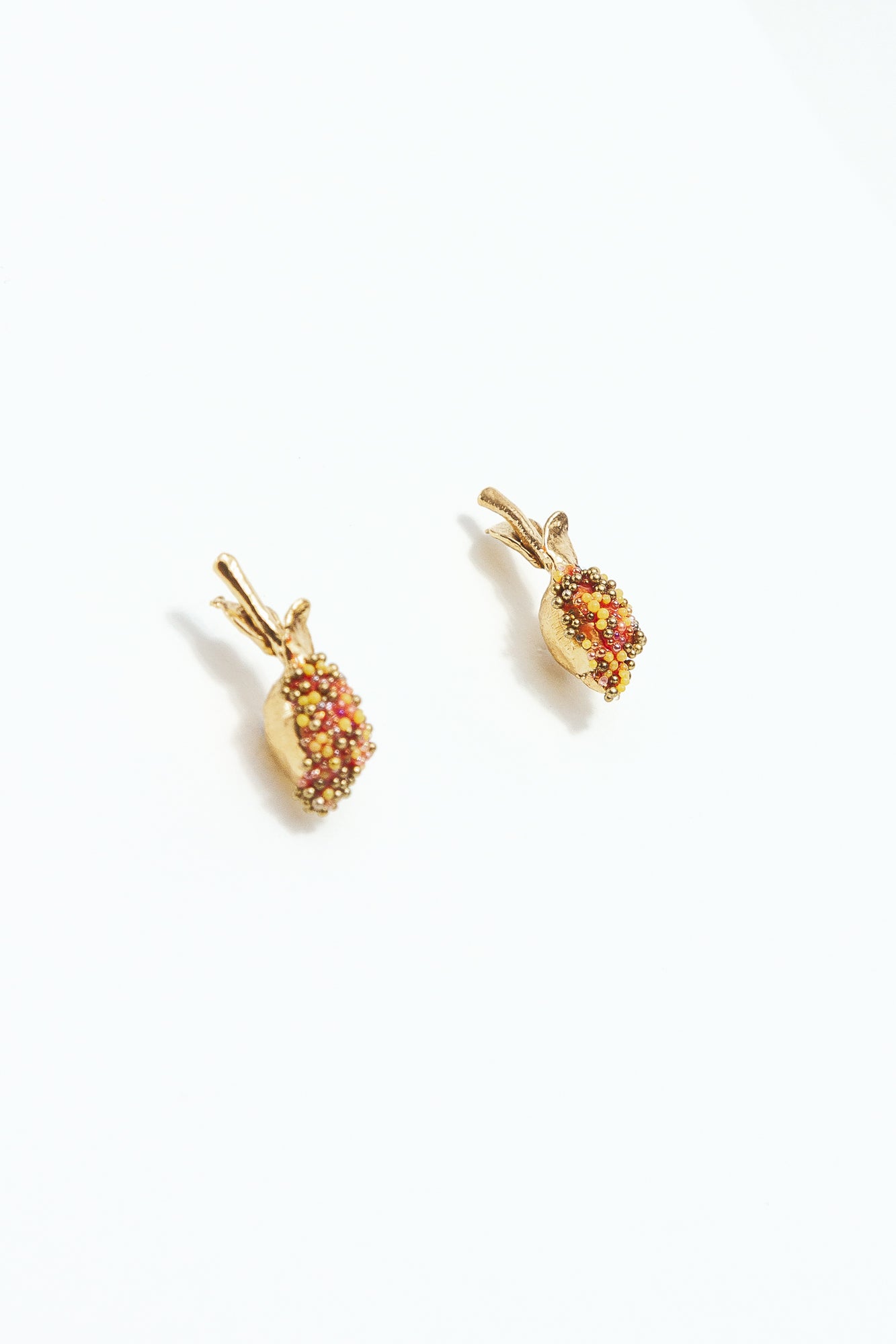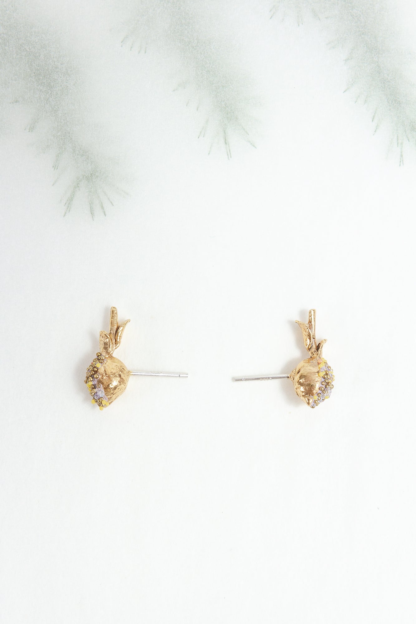 Each piece in this collection is crafted one by one, inspired by the plants and the landscapes around us. First modeled in wax, then cast in metal, and finally plated and hand-painted with care—each one individually.