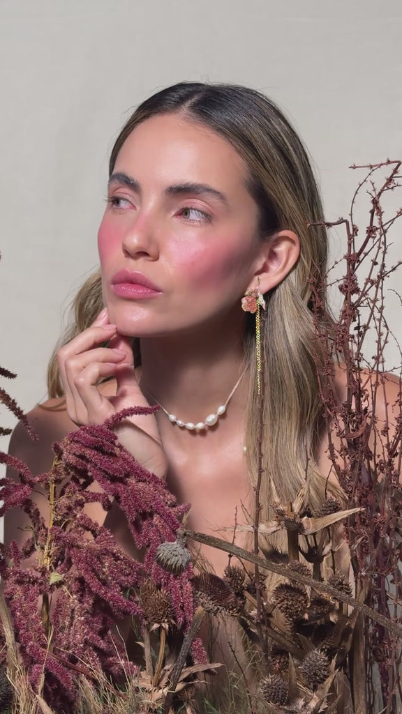 Each piece in this collection is crafted one by one, inspired by the plants and the landscapes around us. First modeled in wax, then cast in metal, and finally plated and hand-painted with care—each one individually.