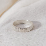 This ring comes packaged in a small cedar, cinnamon, or oak log. These contain lavender seeds inside that blend with the scent of the wood. Each box is unique, just like our rings.