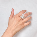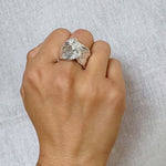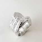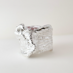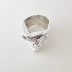 Plegados is a series of sculptural rings made in silver, inspired by the natural processes that shape the landscape: layers that fold, materials that give way, grooves that appear with the passage of time.