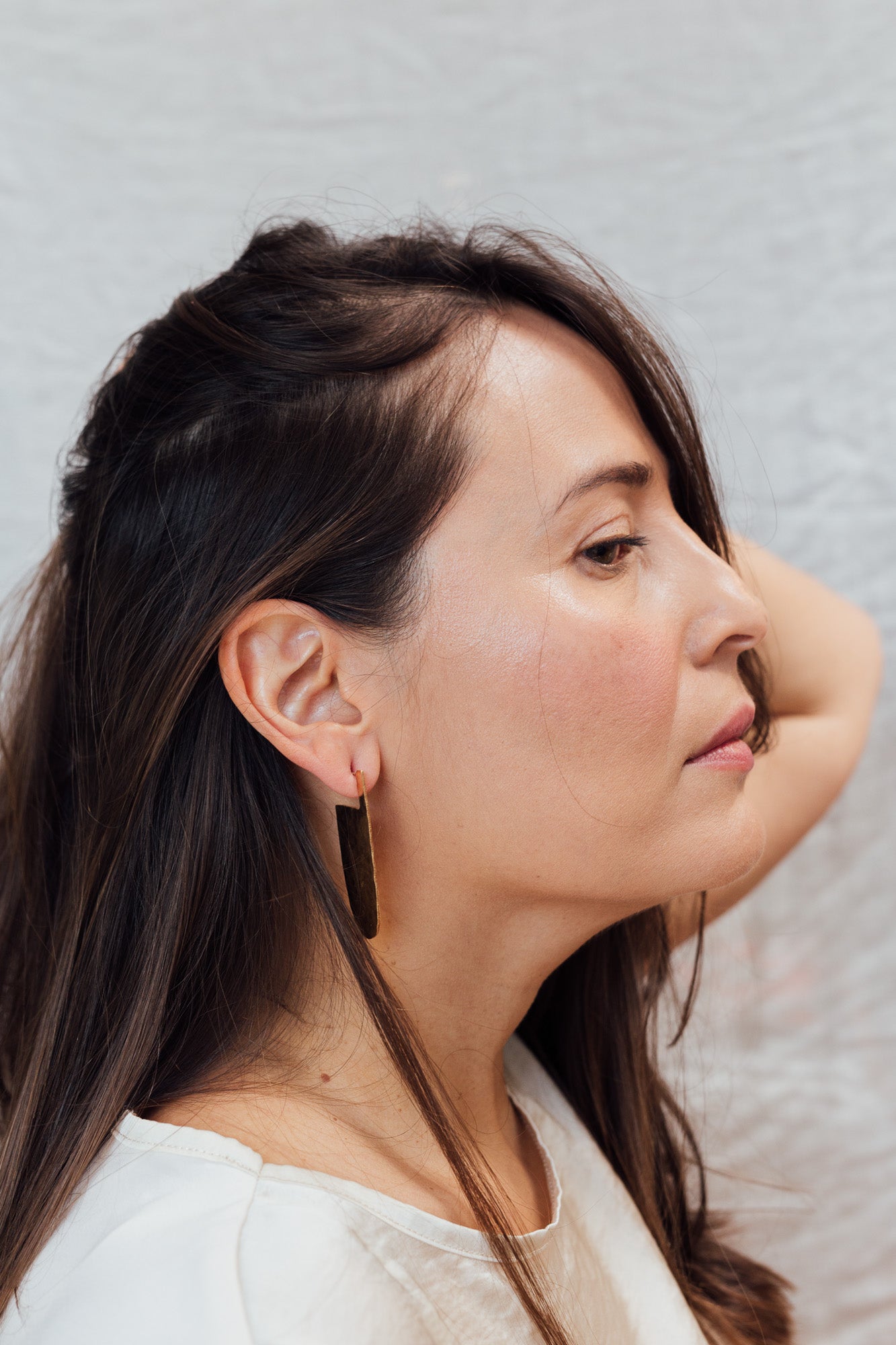 RIZO explores the beauty of movement in undulating shapes and subtle textures. Each piece, hand hammered and gold plated, reflects the essence of the simple and the imperfect.
