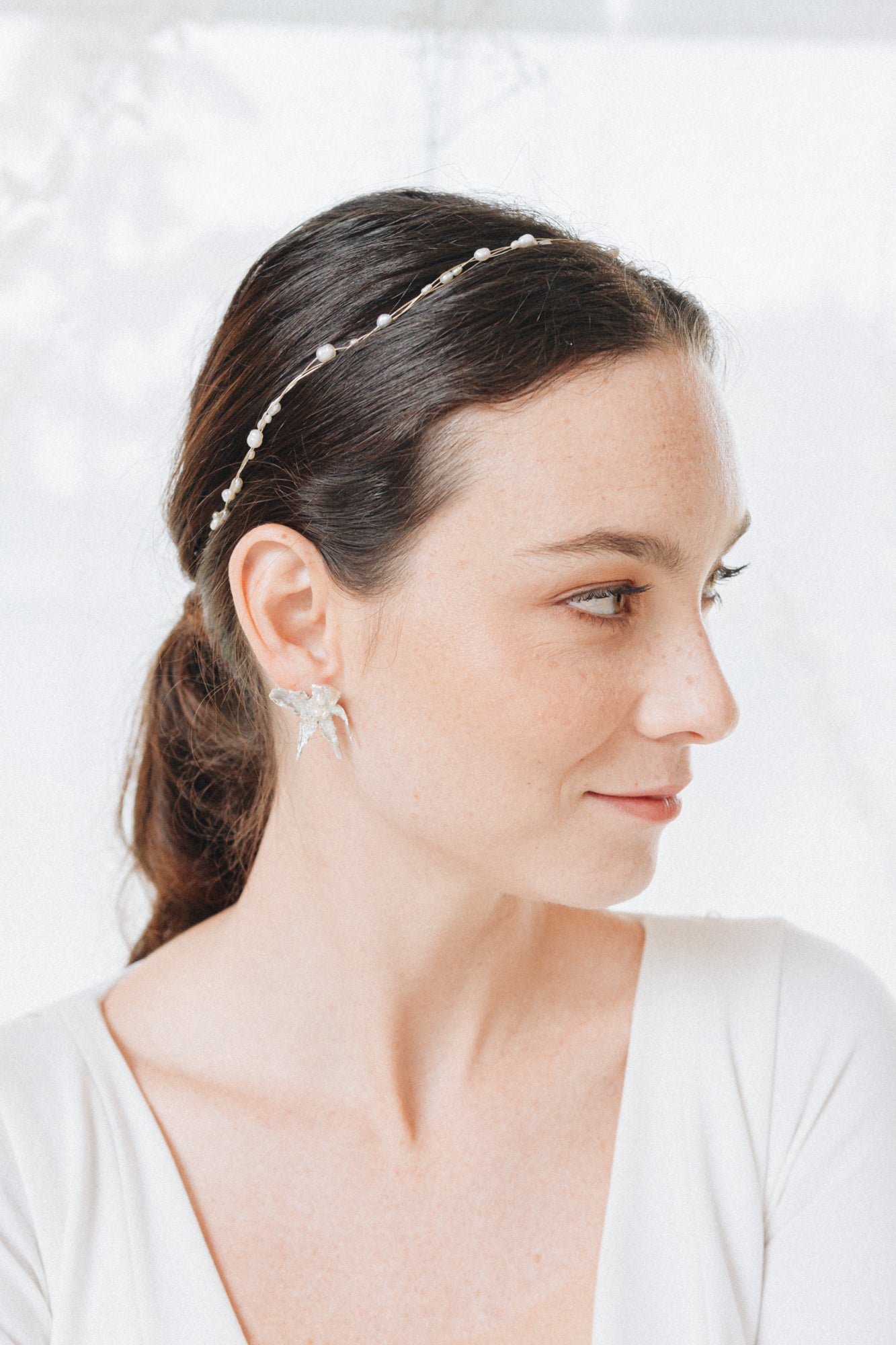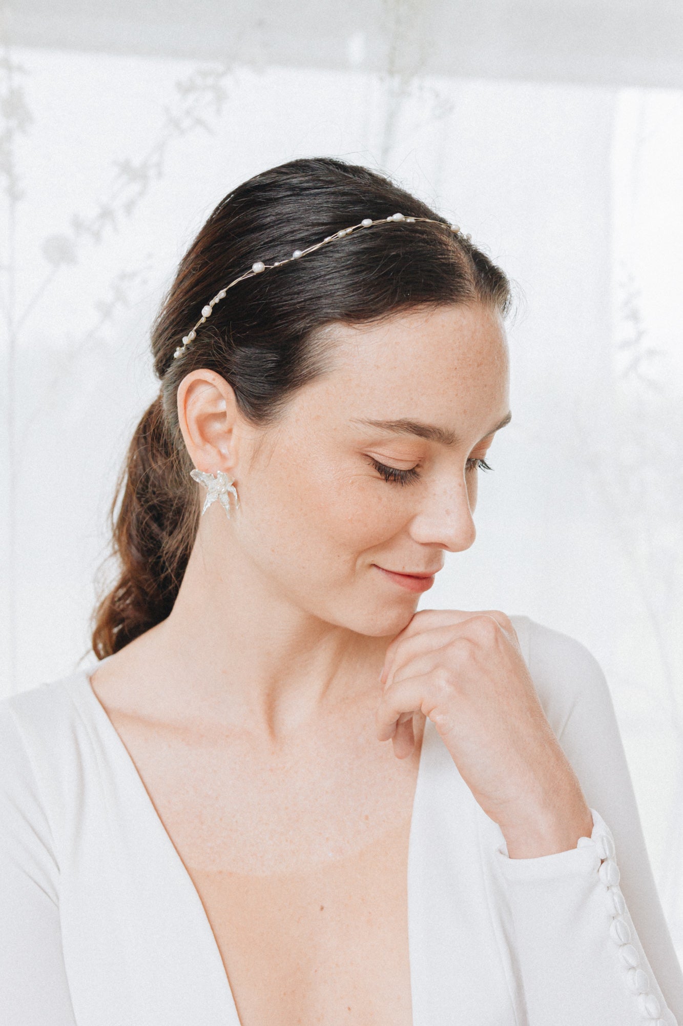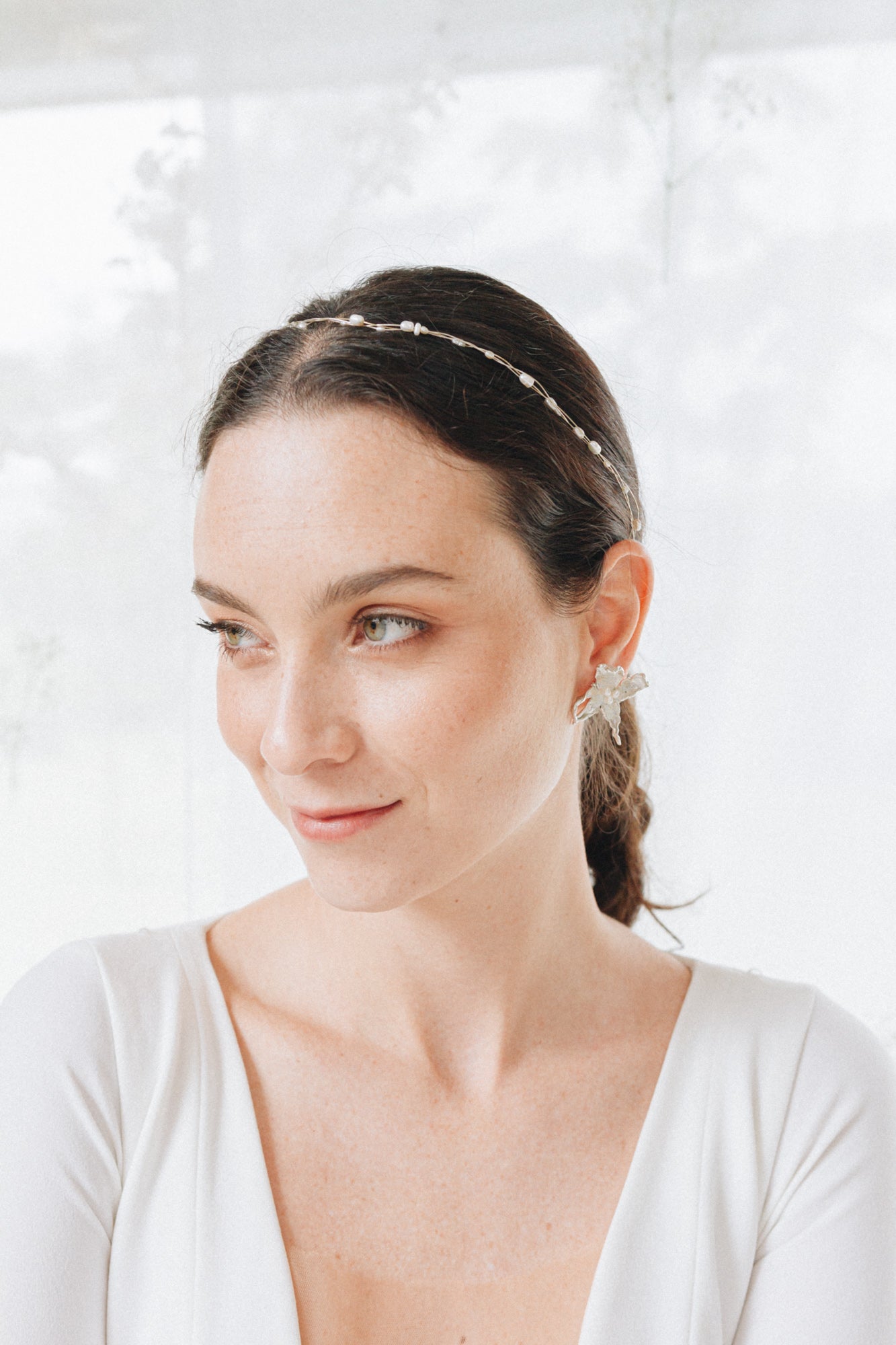 Silvestre is a bridal collection of headpieces and earrings inspired by a special selection of native Colombian orchids, chosen for their shape, texture, and natural movement. Each piece highlights the unique beauty of this emblematic flower, in harmony with the subtle femininity of the bride who wears it.