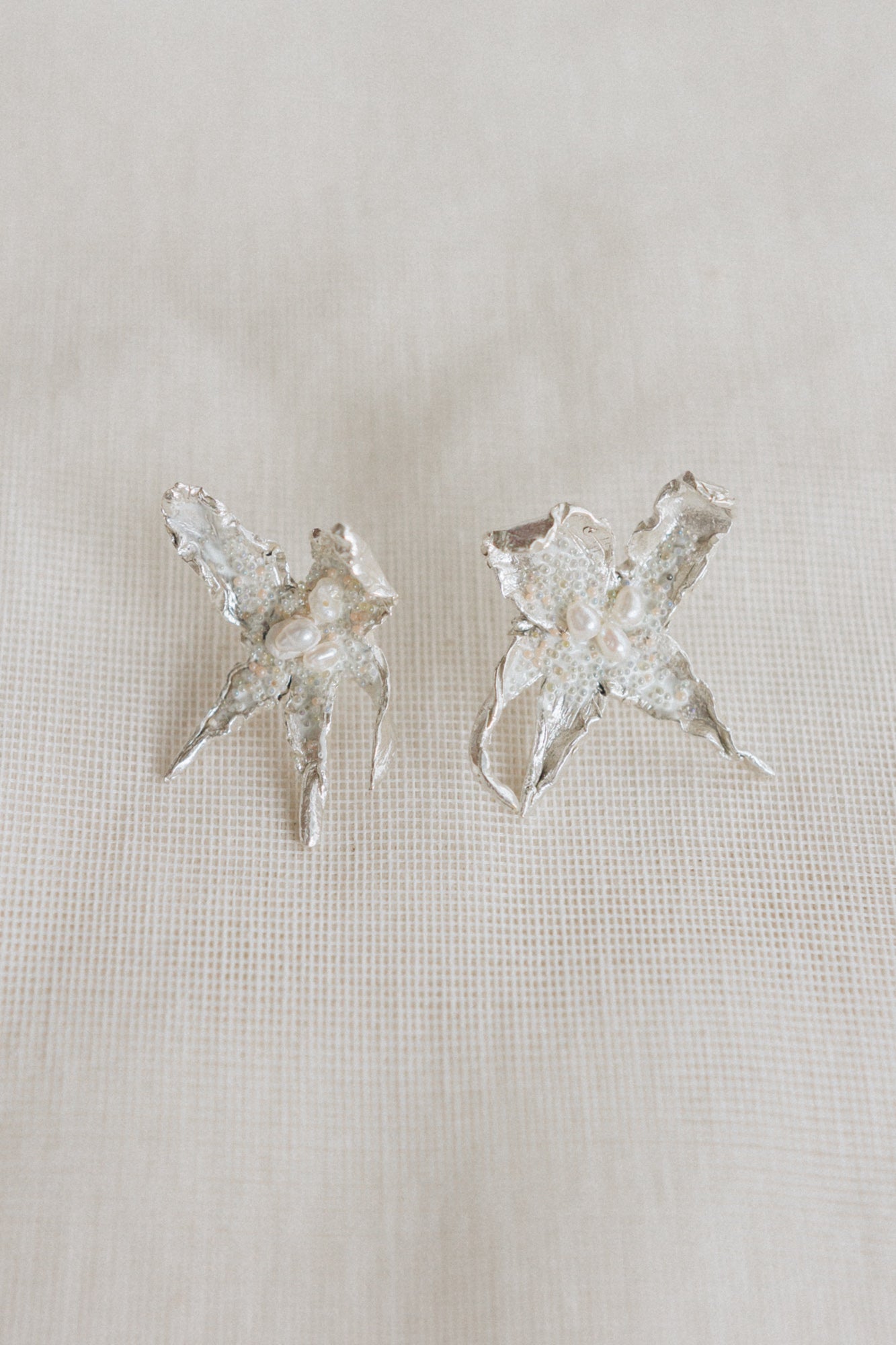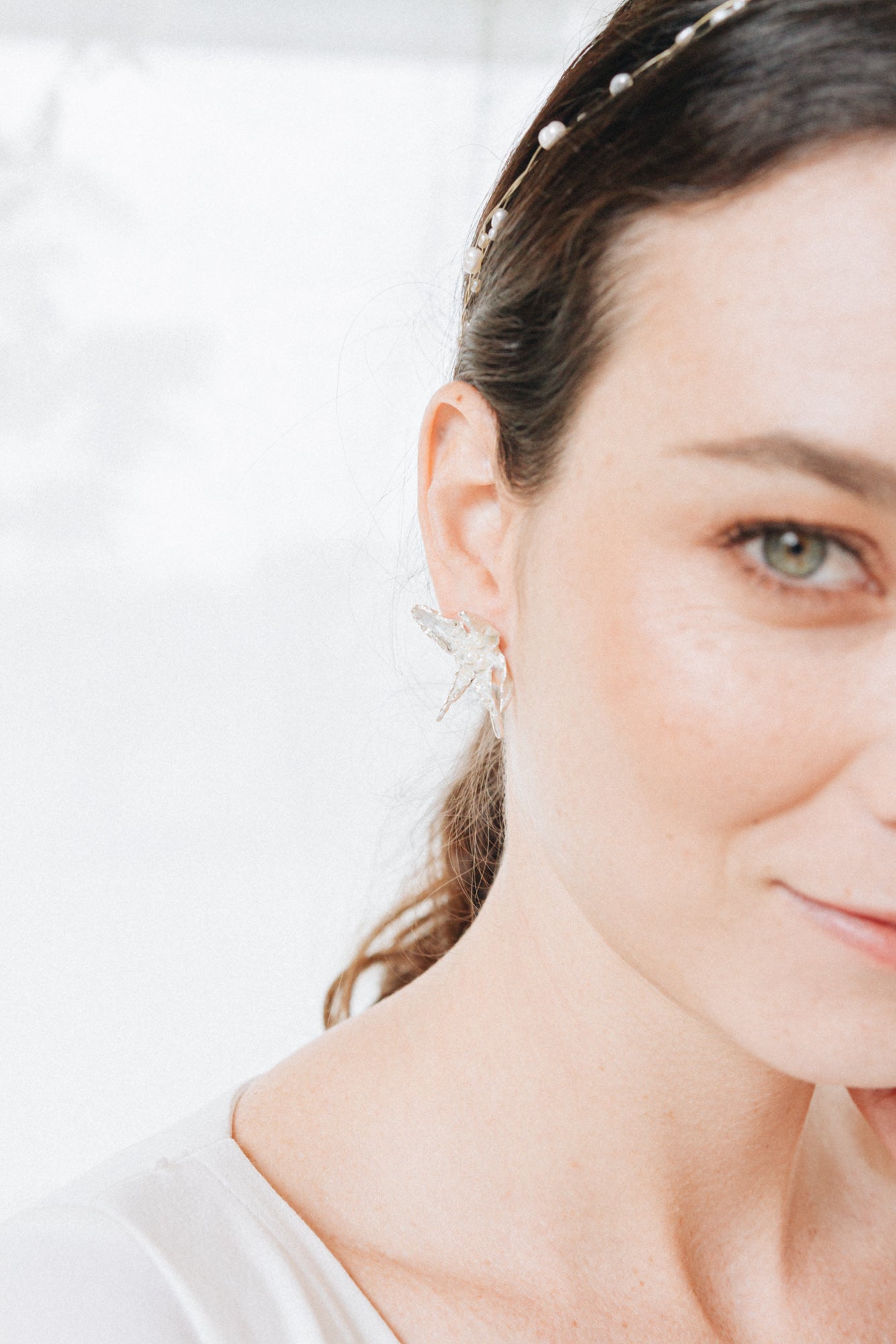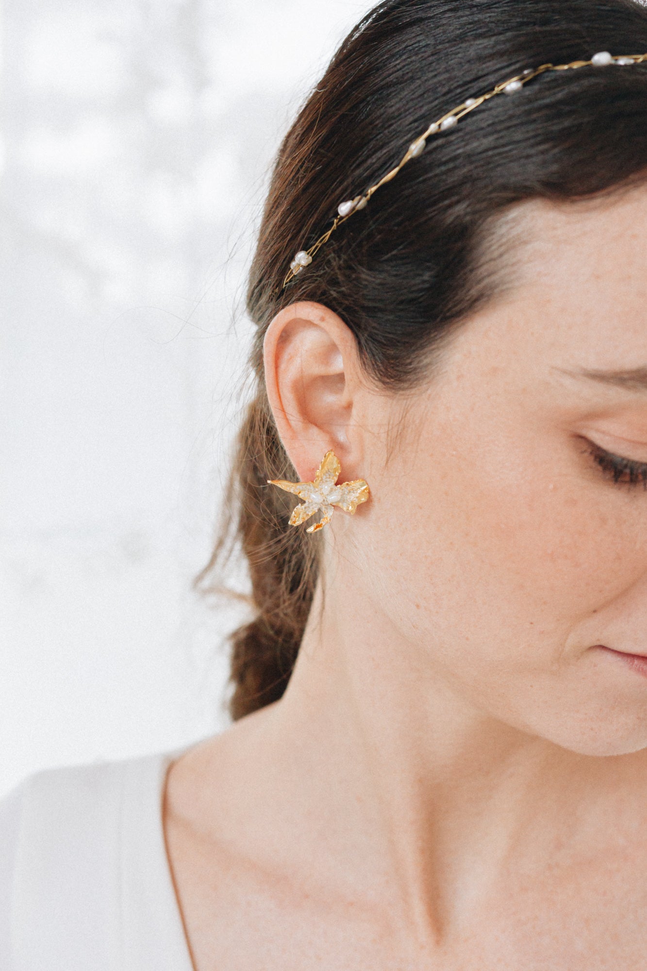 Silvestre is a bridal collection of headpieces and earrings inspired by a special selection of native Colombian orchids, chosen for their shape, texture, and natural movement. Each piece highlights the unique beauty of this emblematic flower, in harmony with the subtle femininity of the bride who wears it.