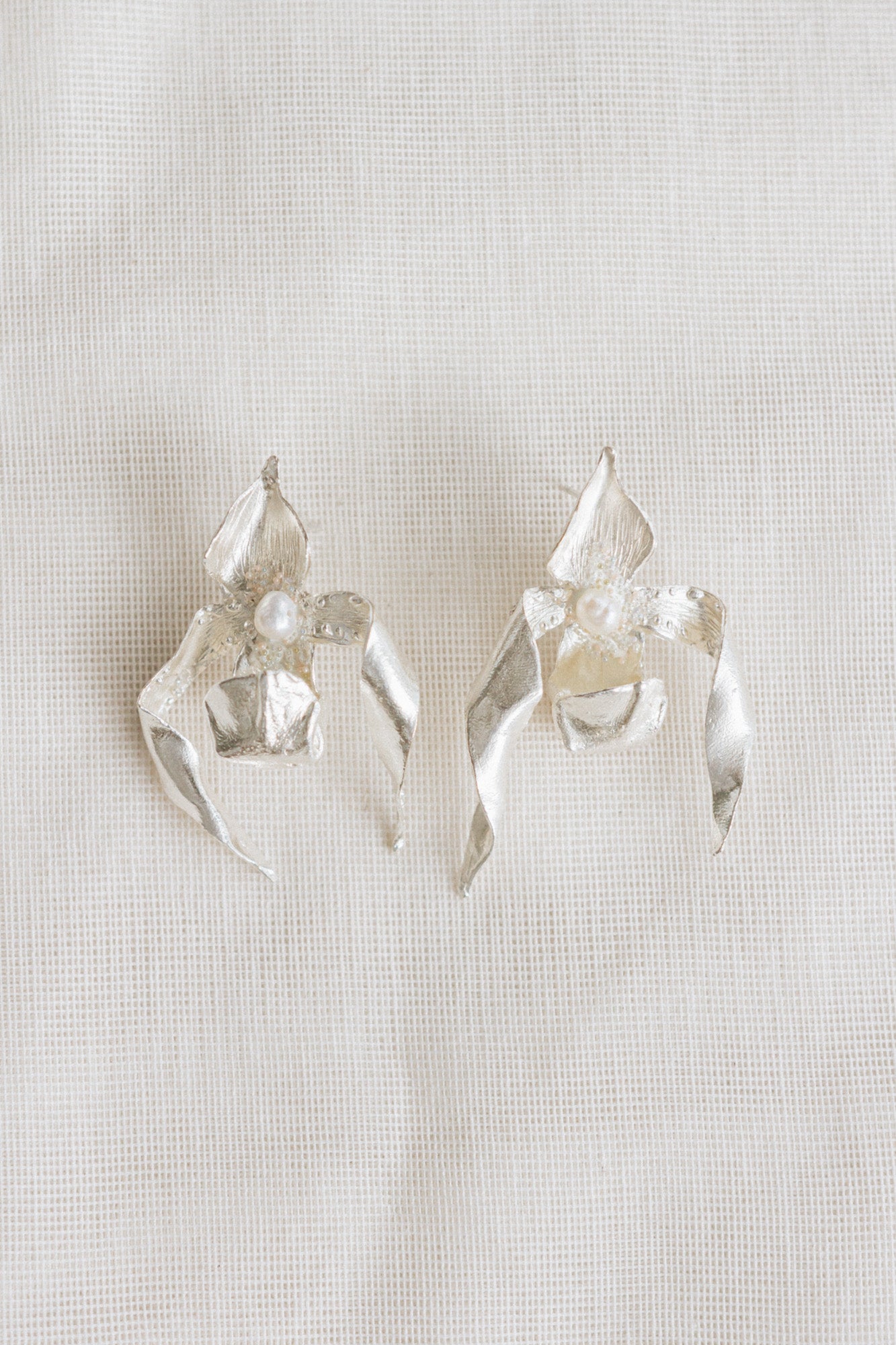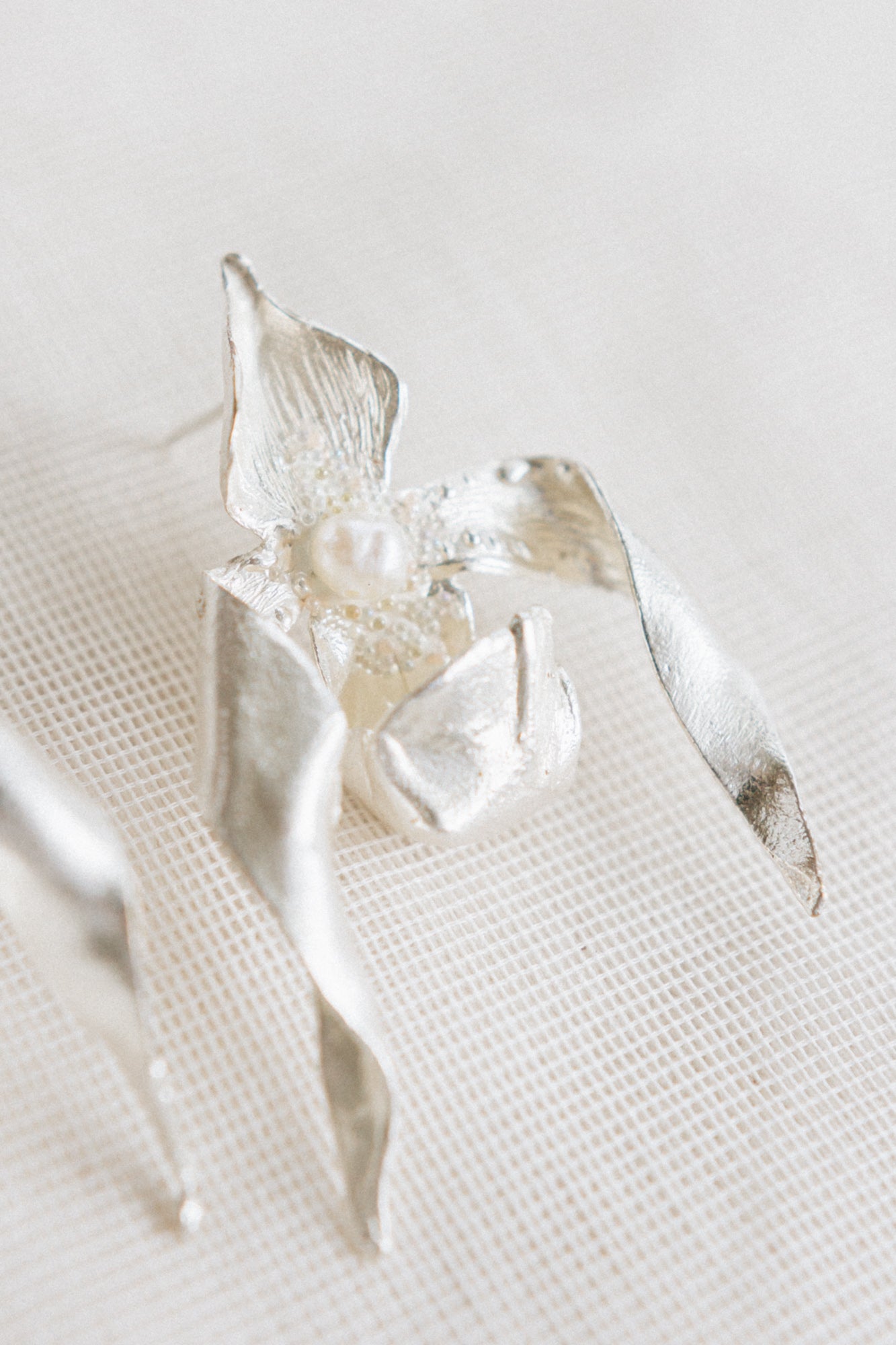 B. Bronze plated with 925 Sterling Silver, hand painted with glass granulation and pearls.