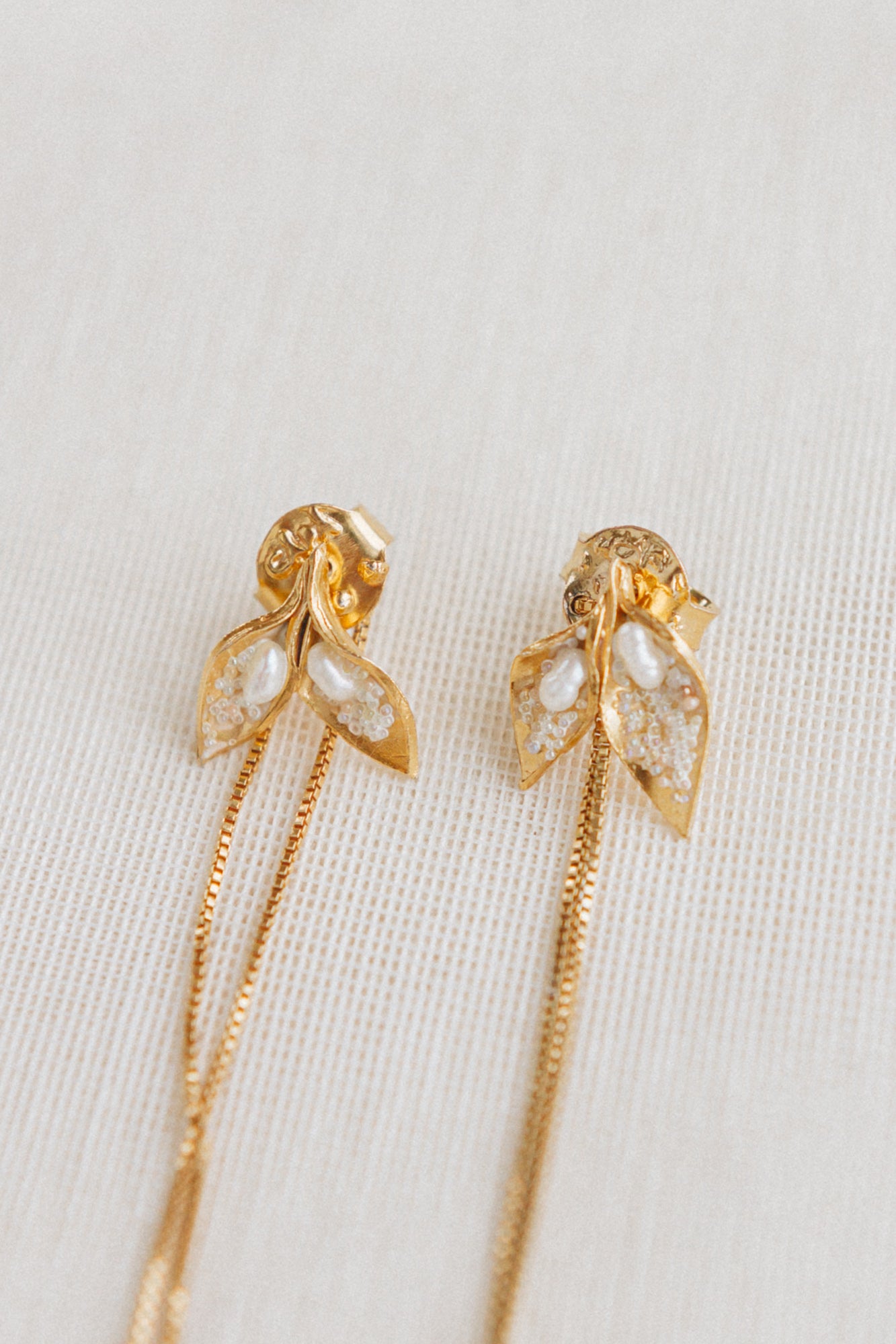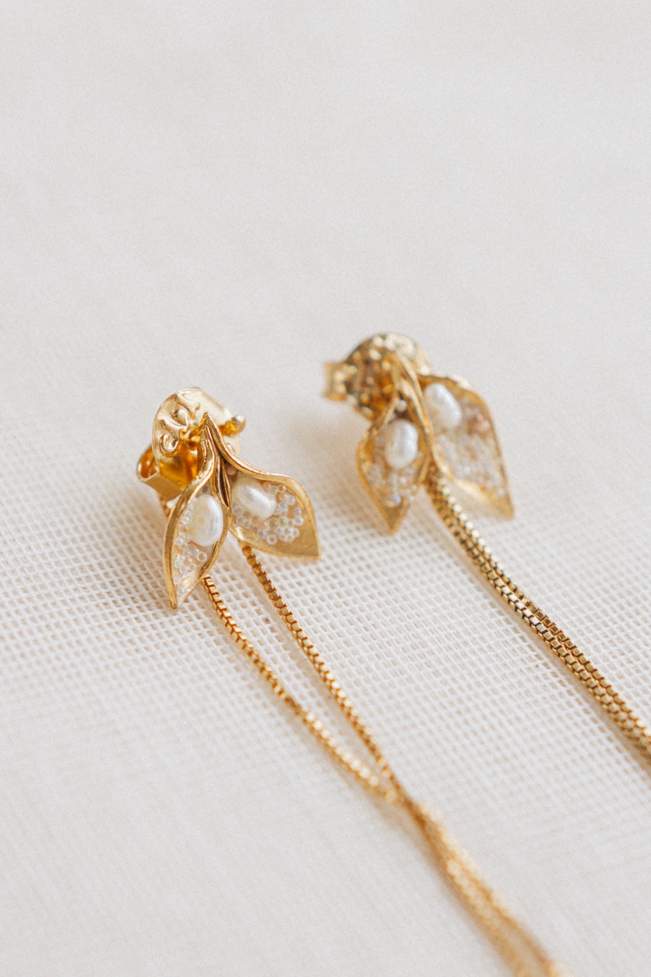 A. Gold plated bronze, hand painted with glass granulation and pearls.