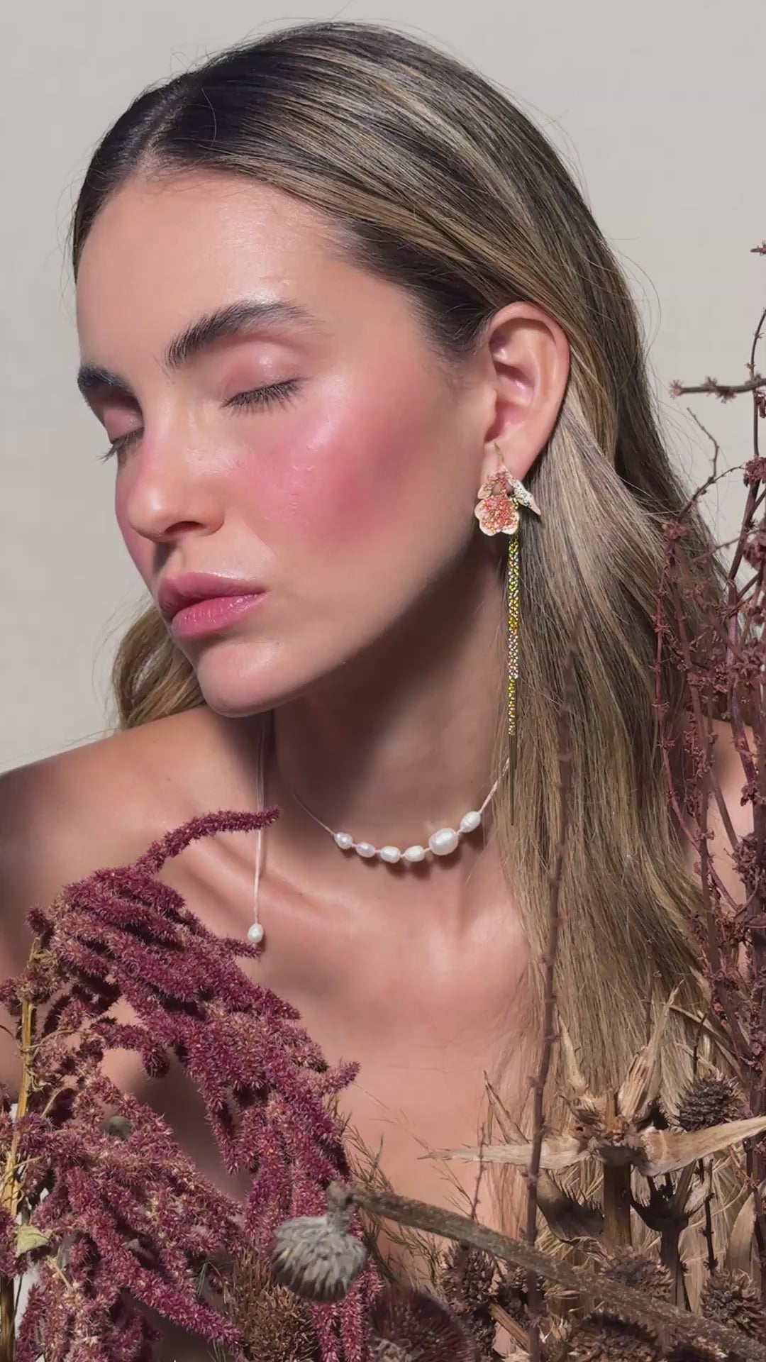 Each piece in this collection is crafted one by one, inspired by the plants and the landscapes around us. First modeled in wax, then cast in metal, and finally plated and hand-painted with care—each one individually.