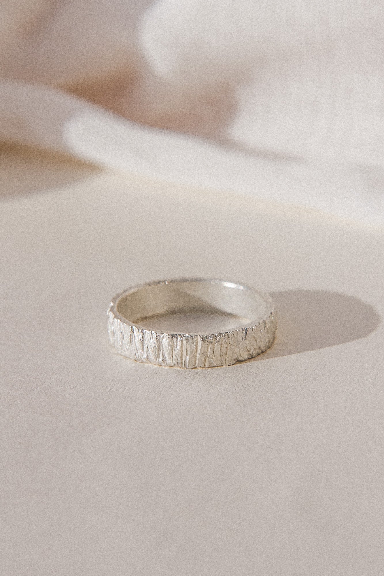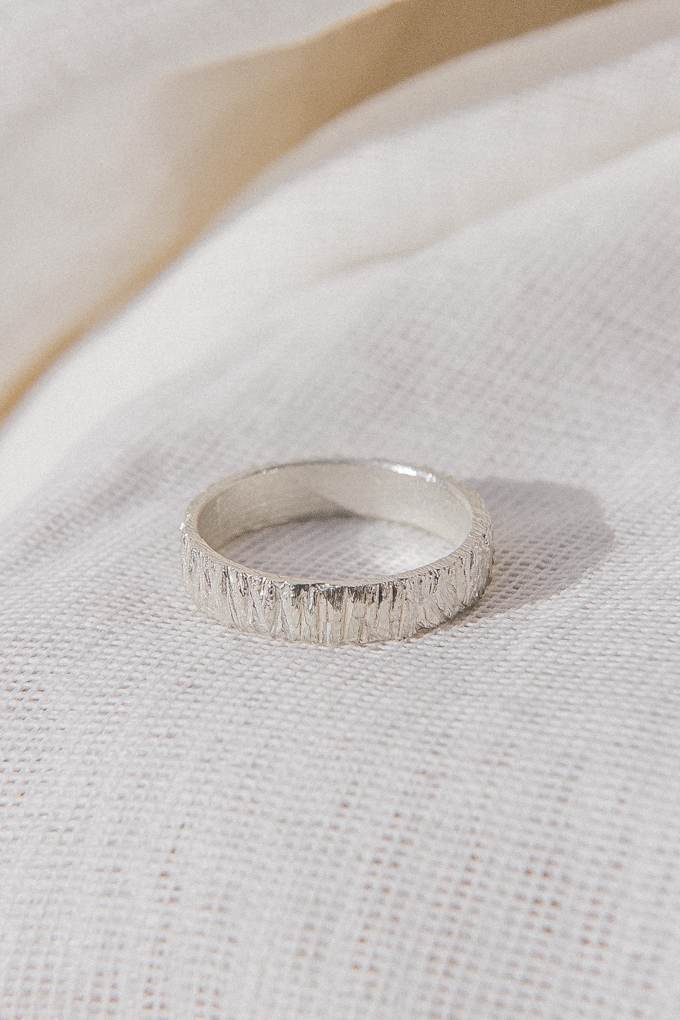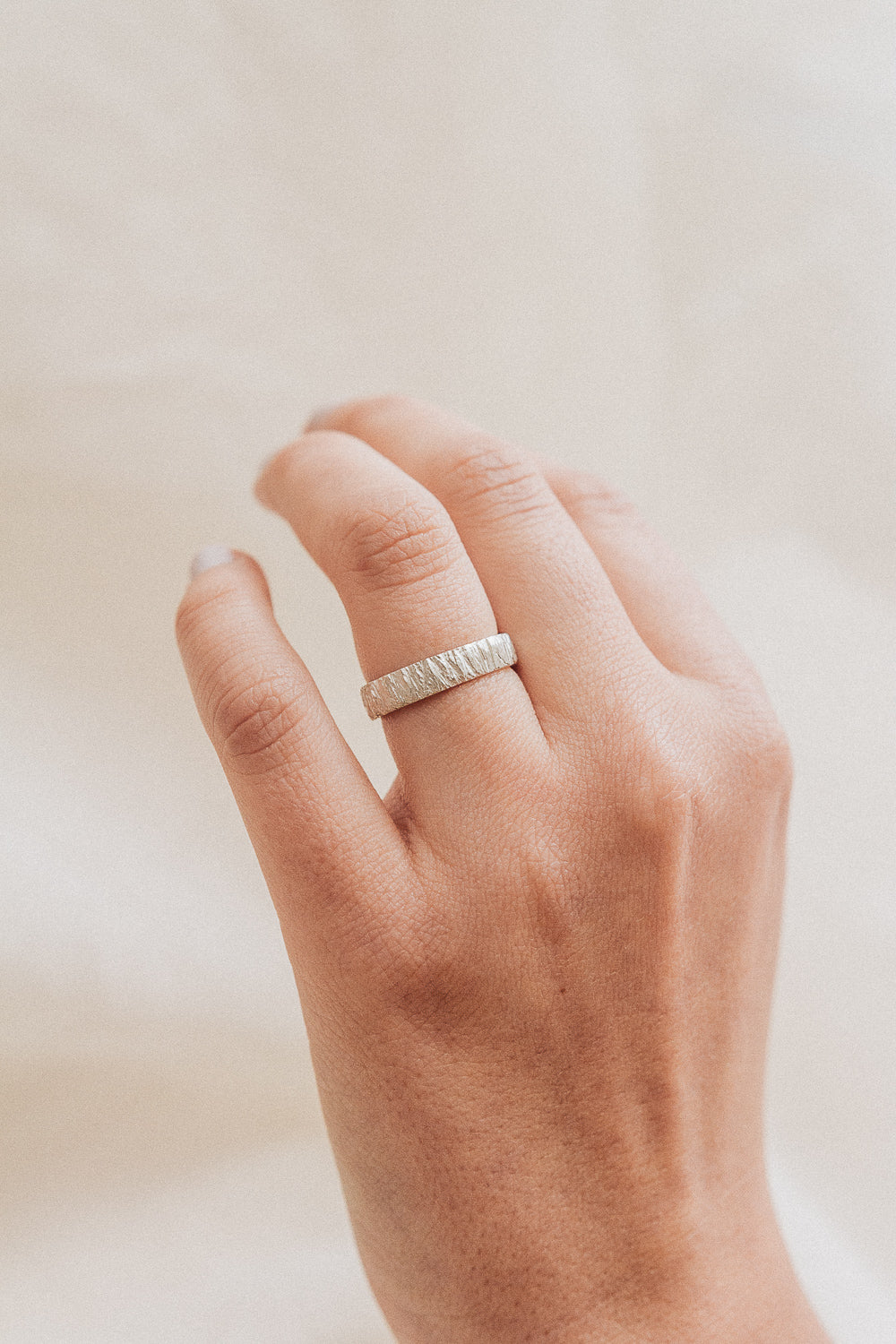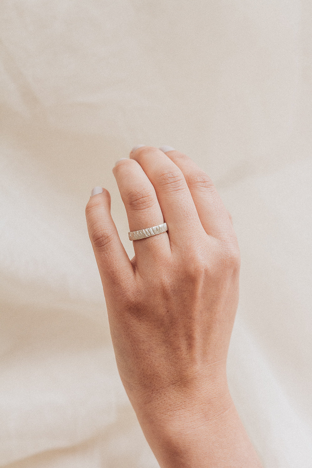 This ring comes packaged in a small cedar, cinnamon, or oak log. These contain lavender seeds inside that blend with the scent of the wood. Each box is unique, just like our rings.