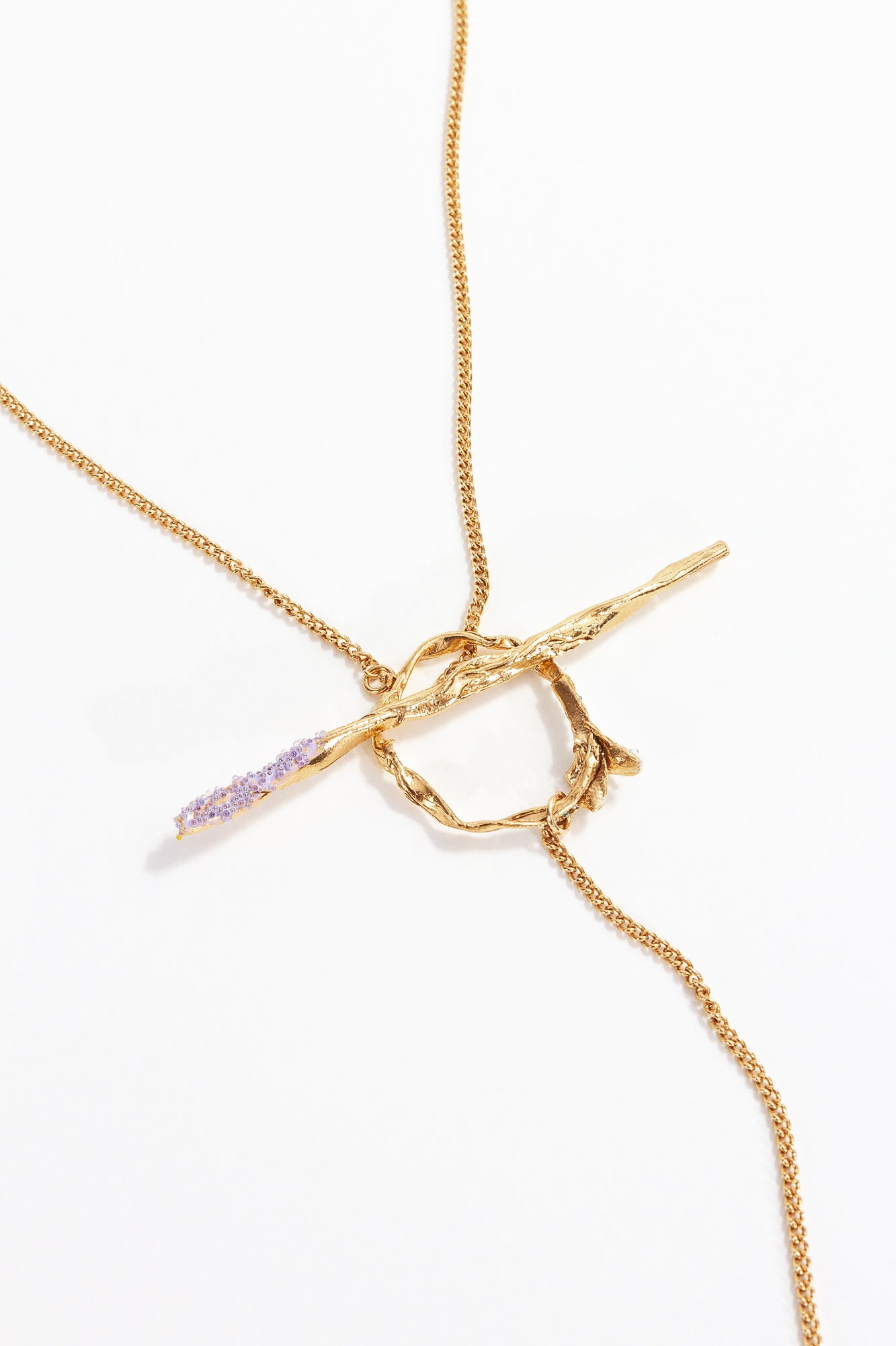 - Material: gold-plated brass, hand-painted and textured with glass granulation.