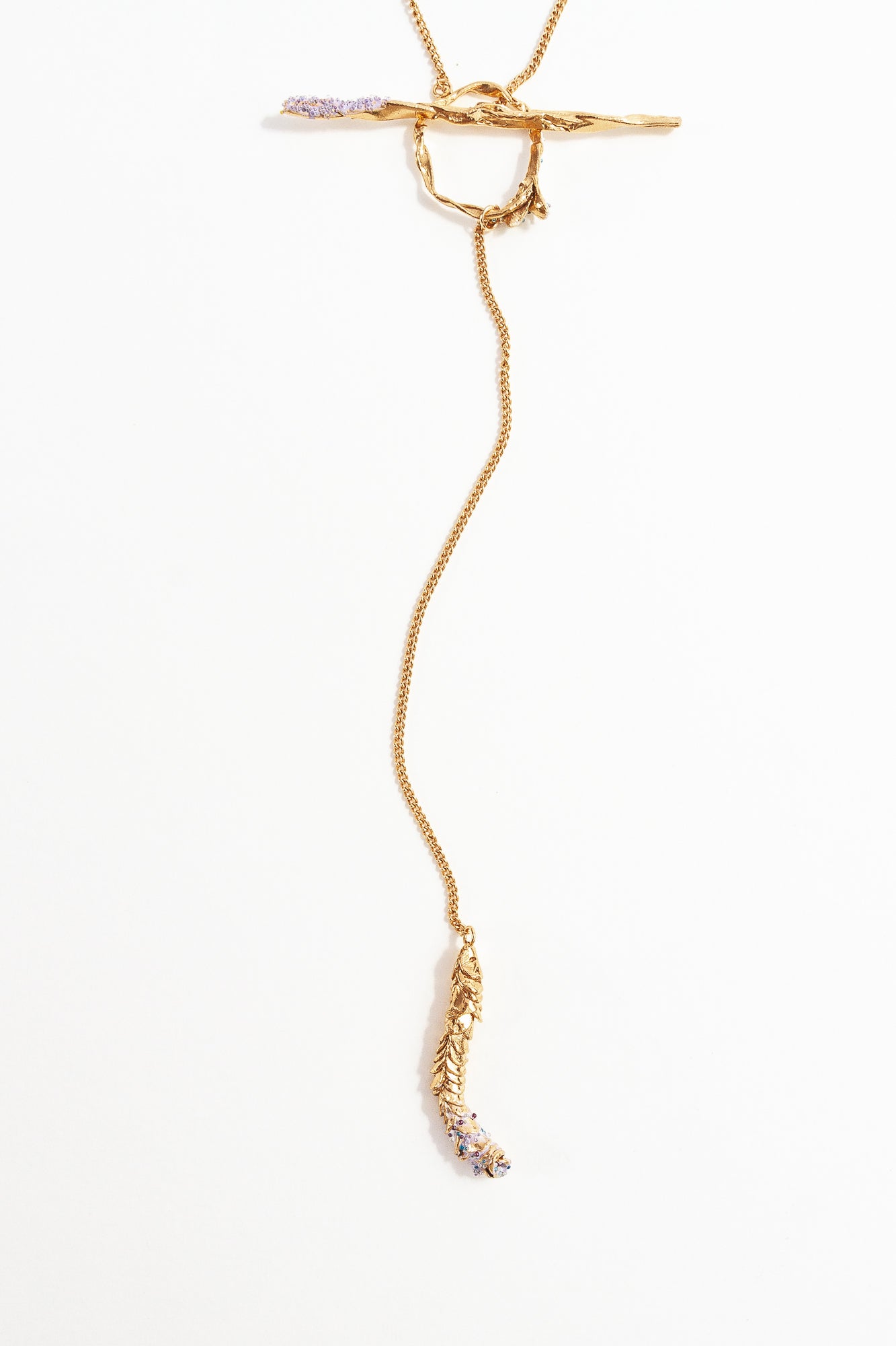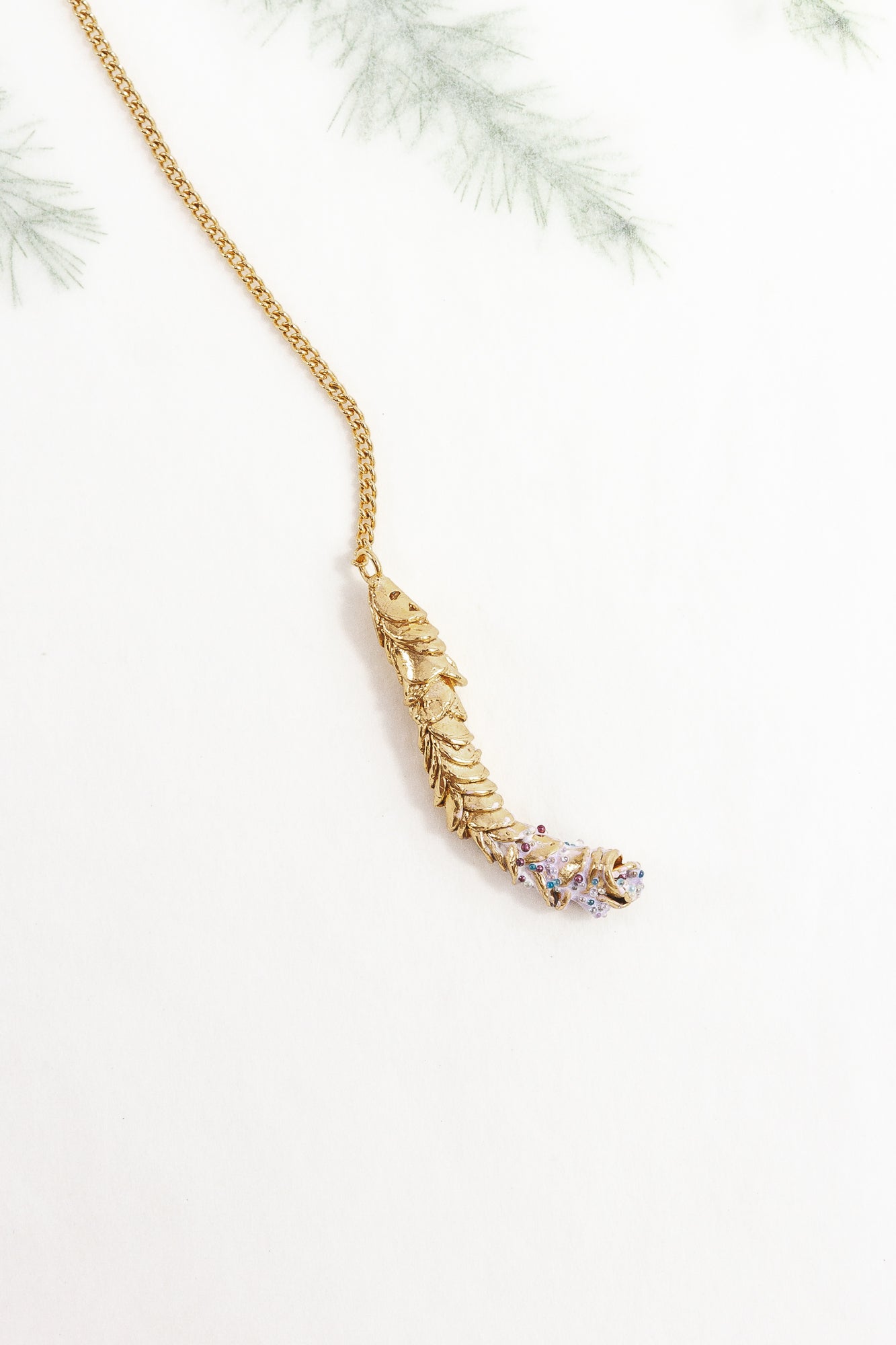 Each piece in this collection is crafted one by one, inspired by the plants and the landscapes around us. First modeled in wax, then cast in metal, and finally plated and hand-painted with care—each one individually.