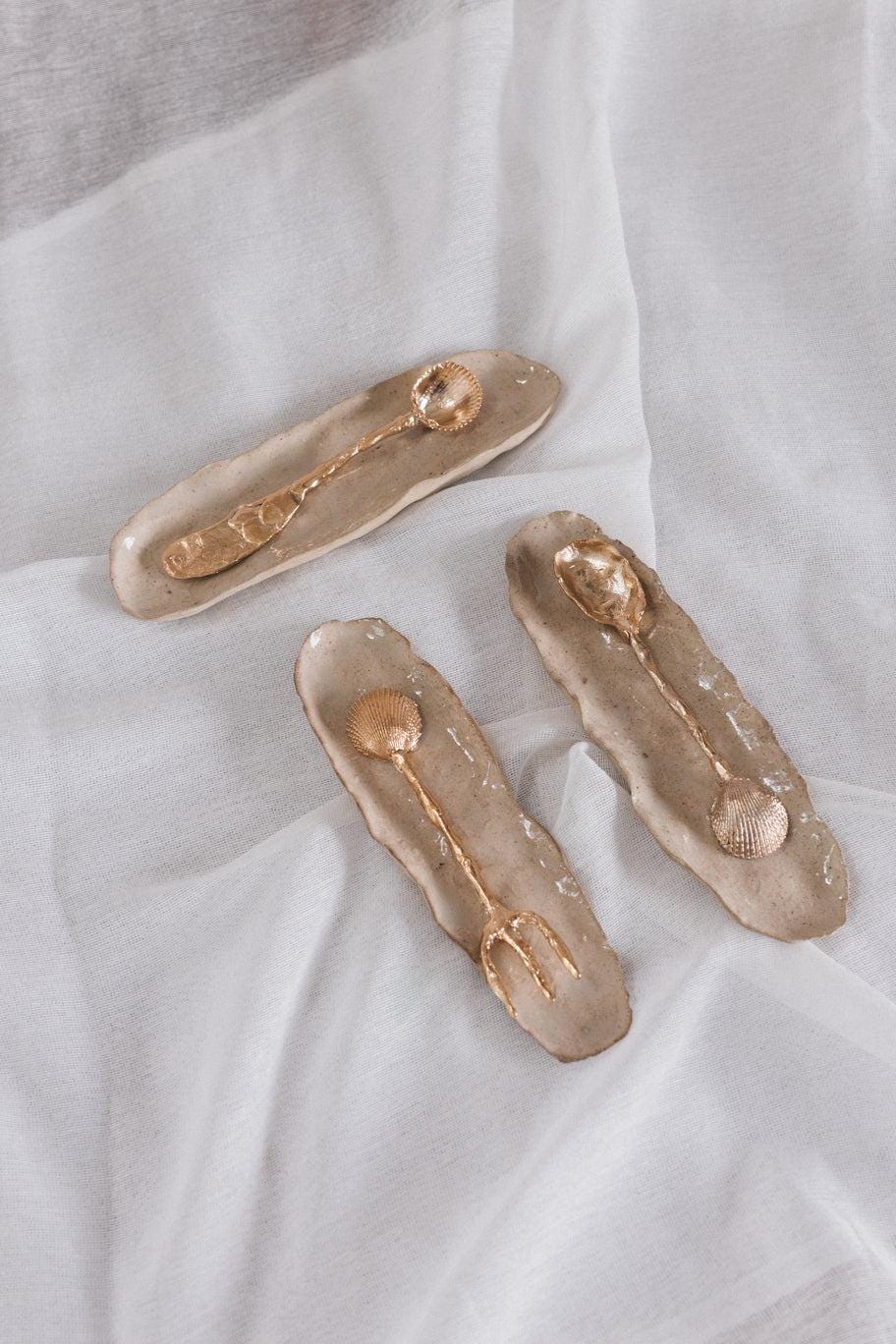 Utilitarian and decorative pieces crafted in brass and ceramic, bringing CÂPÂ’s organic language into everyday spaces. The collection includes utensils, jewelry holders, and flowers inspired by native orchids such as Cattleya and Huánuco, as well as illustrations created in collaboration with artists, based on our jewelry. A collection that transforms the functional into the poetic.